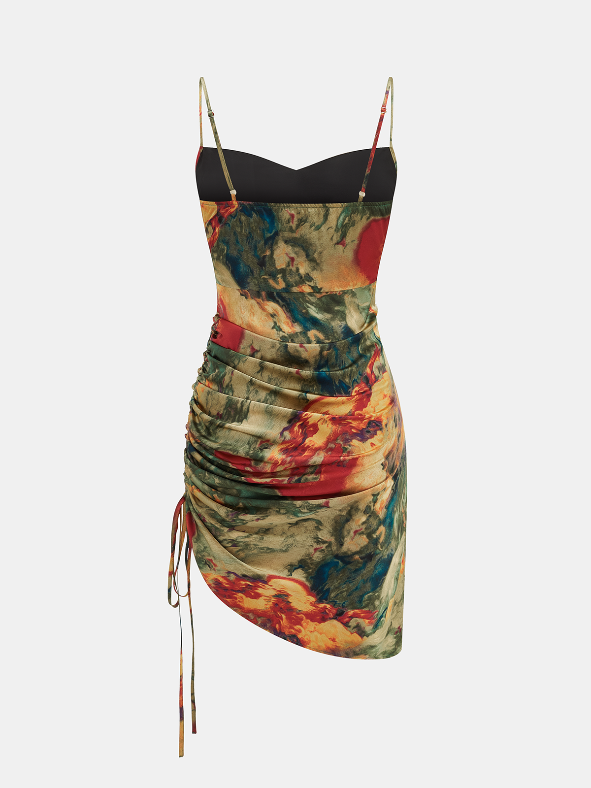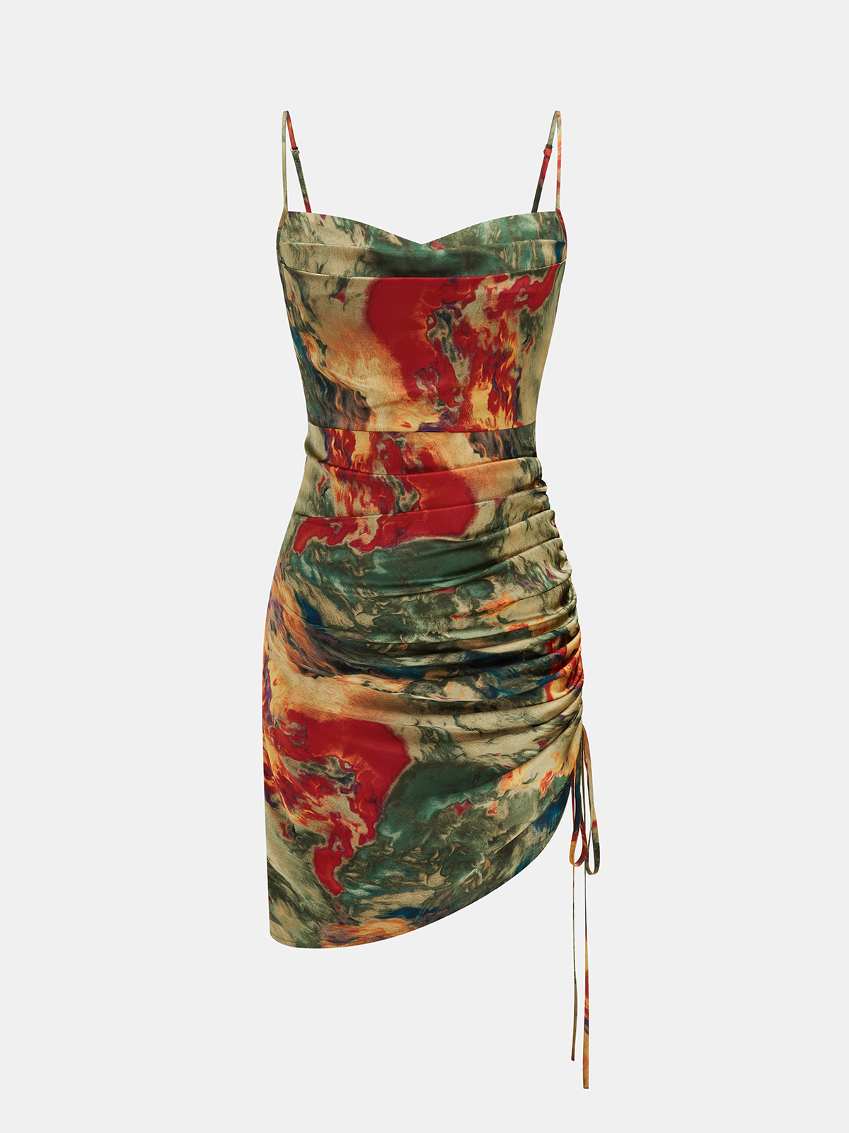 Abstract Print Ruched Drawstring Cami Mini Dress