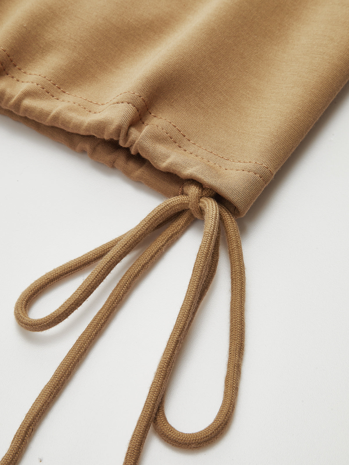 Air-Layered Drawstring Hem Short-Sleeve Top