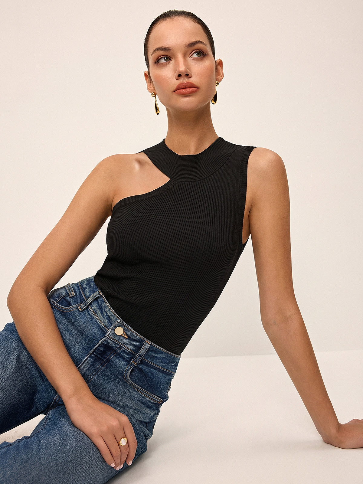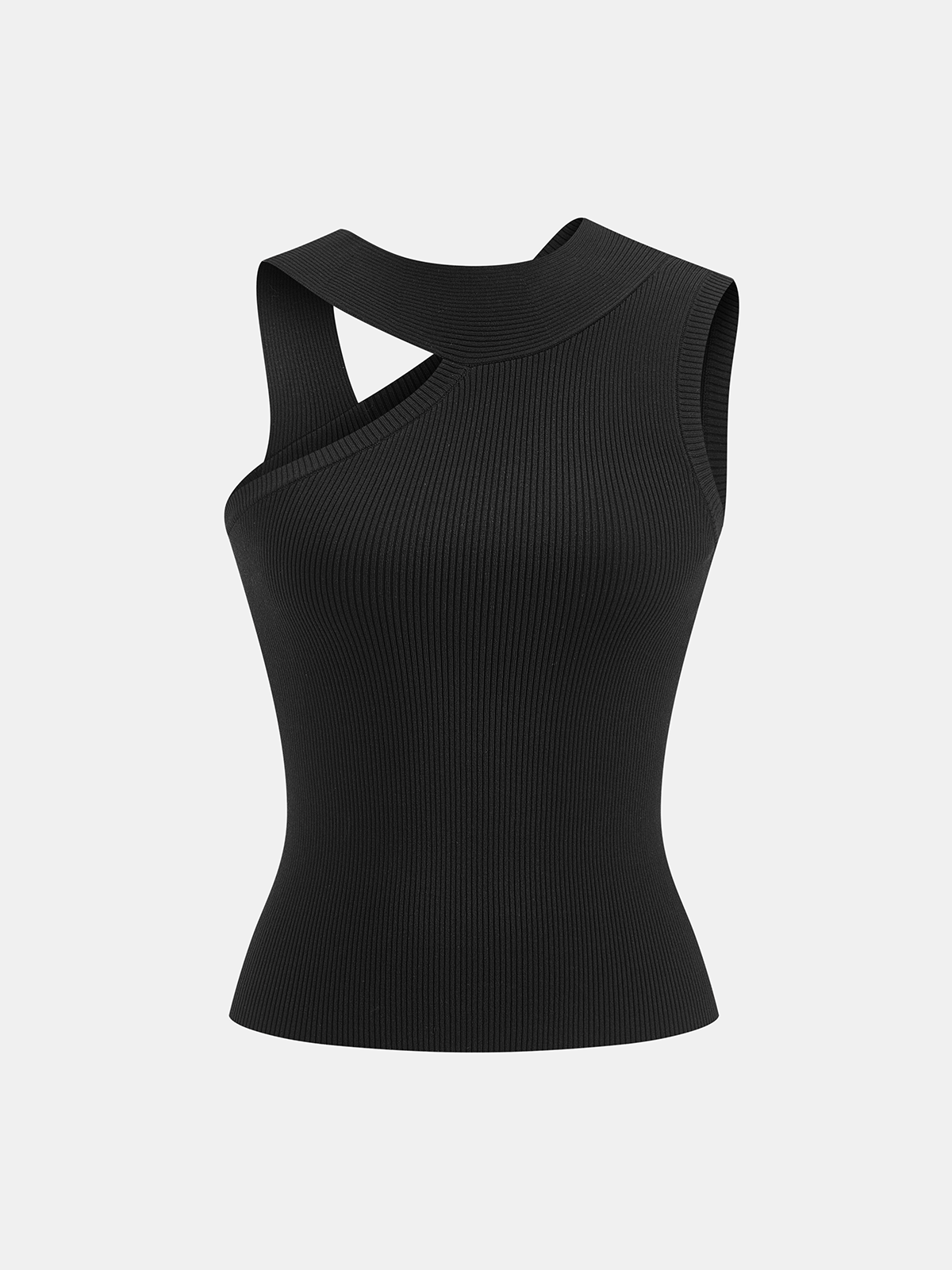Asymmetrical Cut-Out Ribbed Knit Tank Top