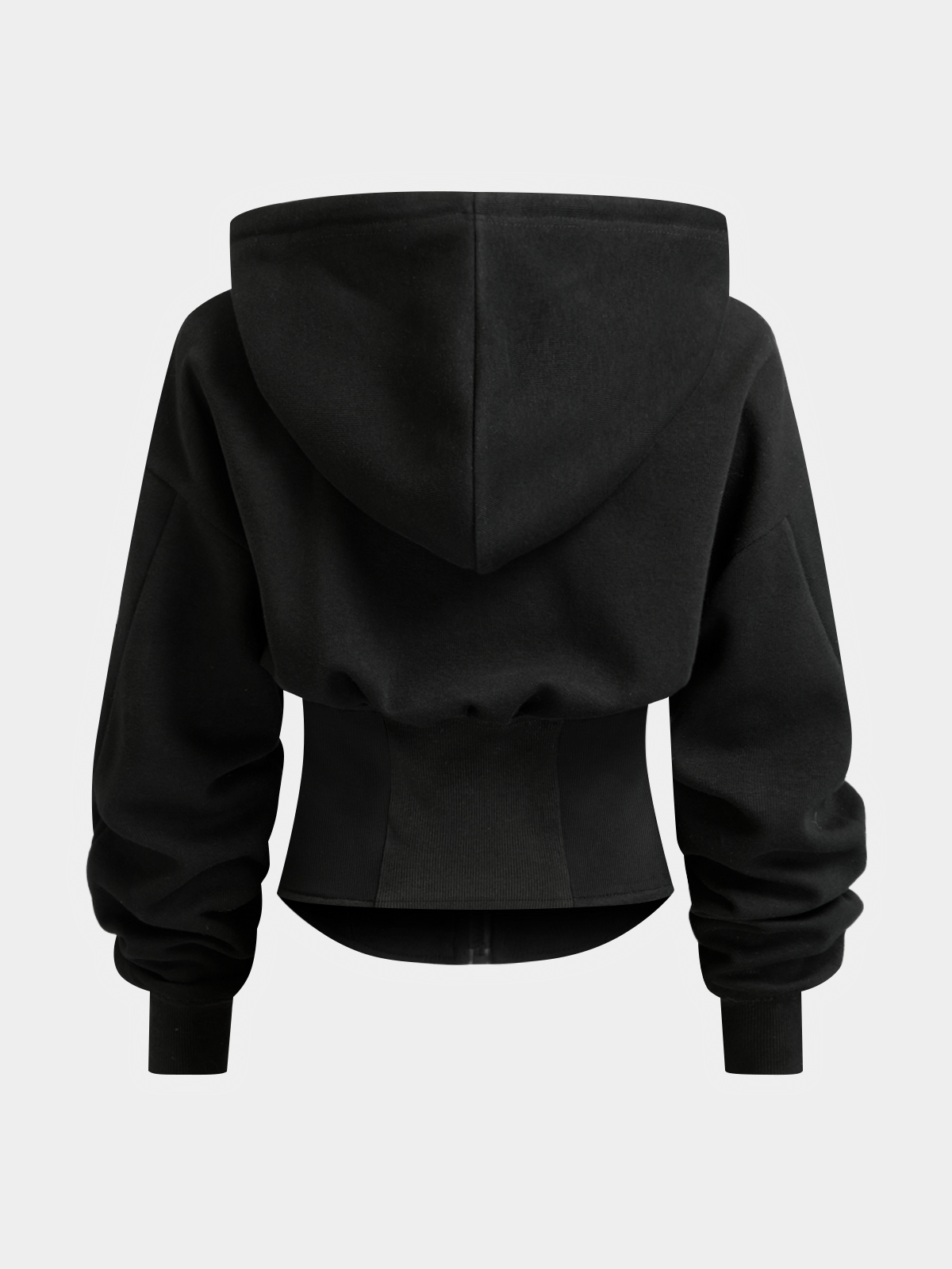Omg this is the sexiest hoody I’ve ever owned! Quality, fit are so good. The boning in the mid section snatches your waist in all the right places. I’m 120 pounds and ordered the small.