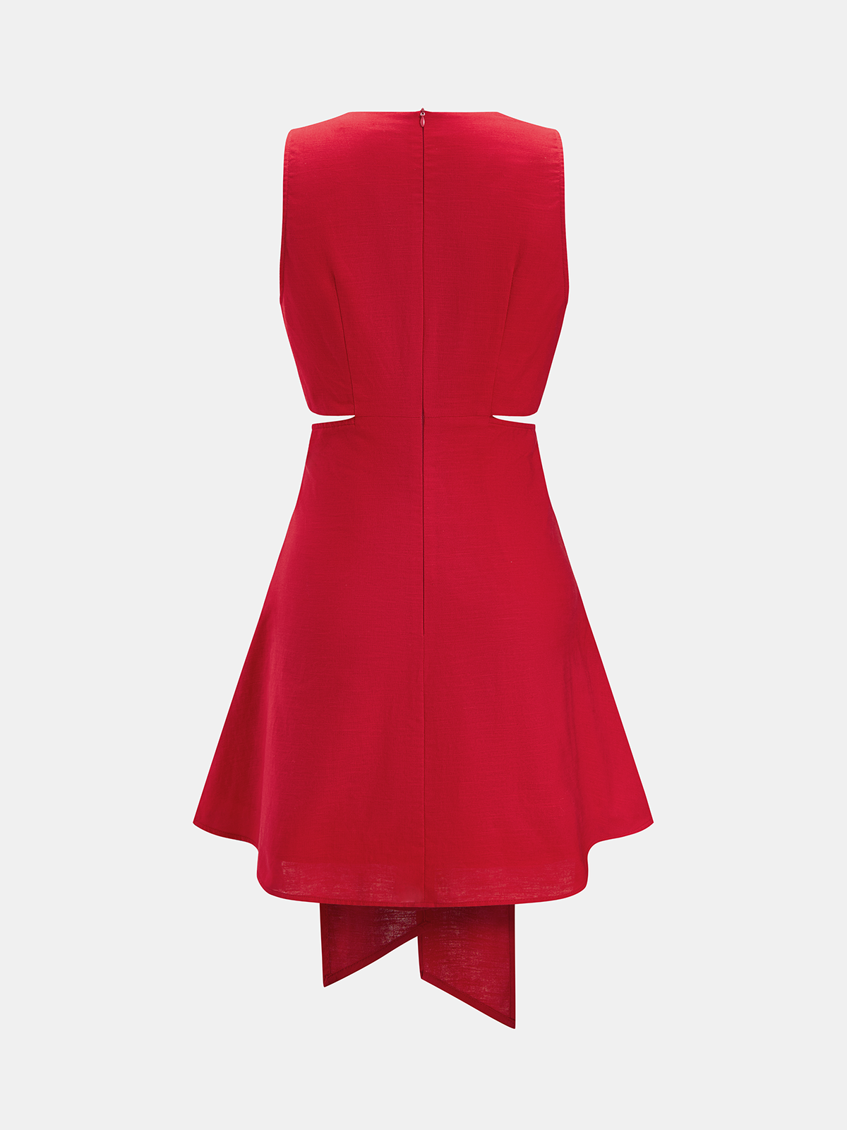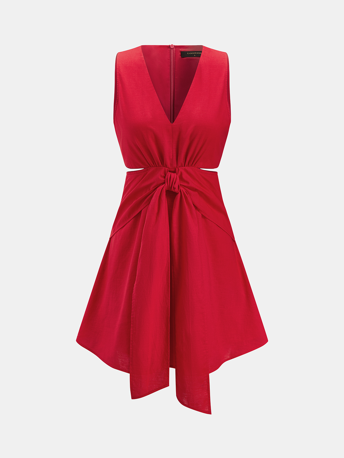 clothing,coll:dresses,coll:linen_cotton,coll:night_glam,coll:vacation,coll:weekend_getaway,cotton&linen,dresses,feminine,hollow,in_six_month,no,non-stretch,not_low_sales,oa260203073,party,photo_ai,red,regular,regular fit,short,sleeveless,summer hues,tied&knot,v-neck,vacation,women