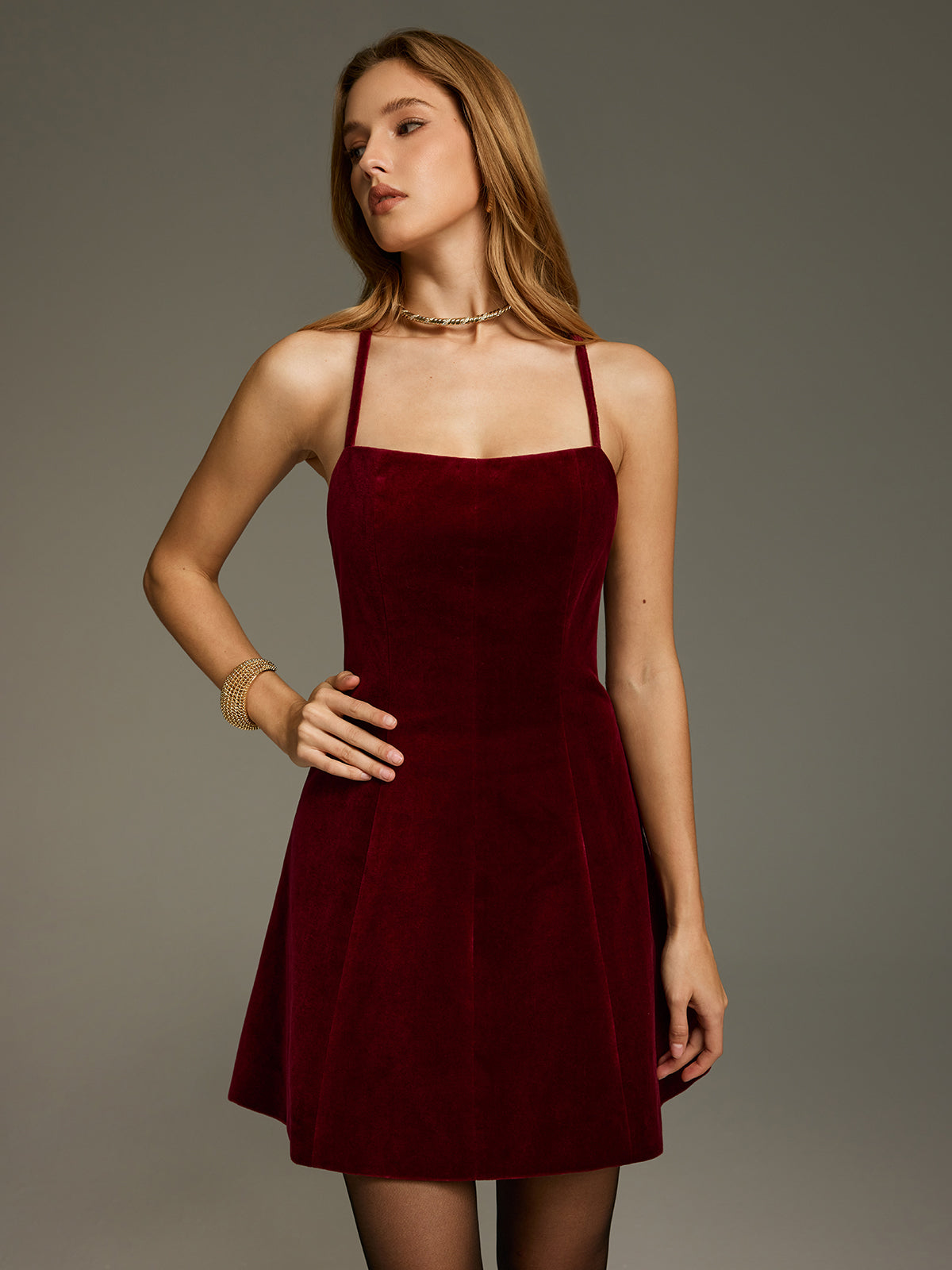 25 christmas,backless,burgundy,clothing,coll:dresses,coll:night_glam,coll:sheer_bare-back,coll:trending,coll:vintage_fabrics,collarless,date,dresses,in_six_month,invisible zipper,minegence,no,not_low_sales,oa251030062,party,photo_model,regular,regular fit,short,sleeveless,slight stretch,velvet,winter hues,women