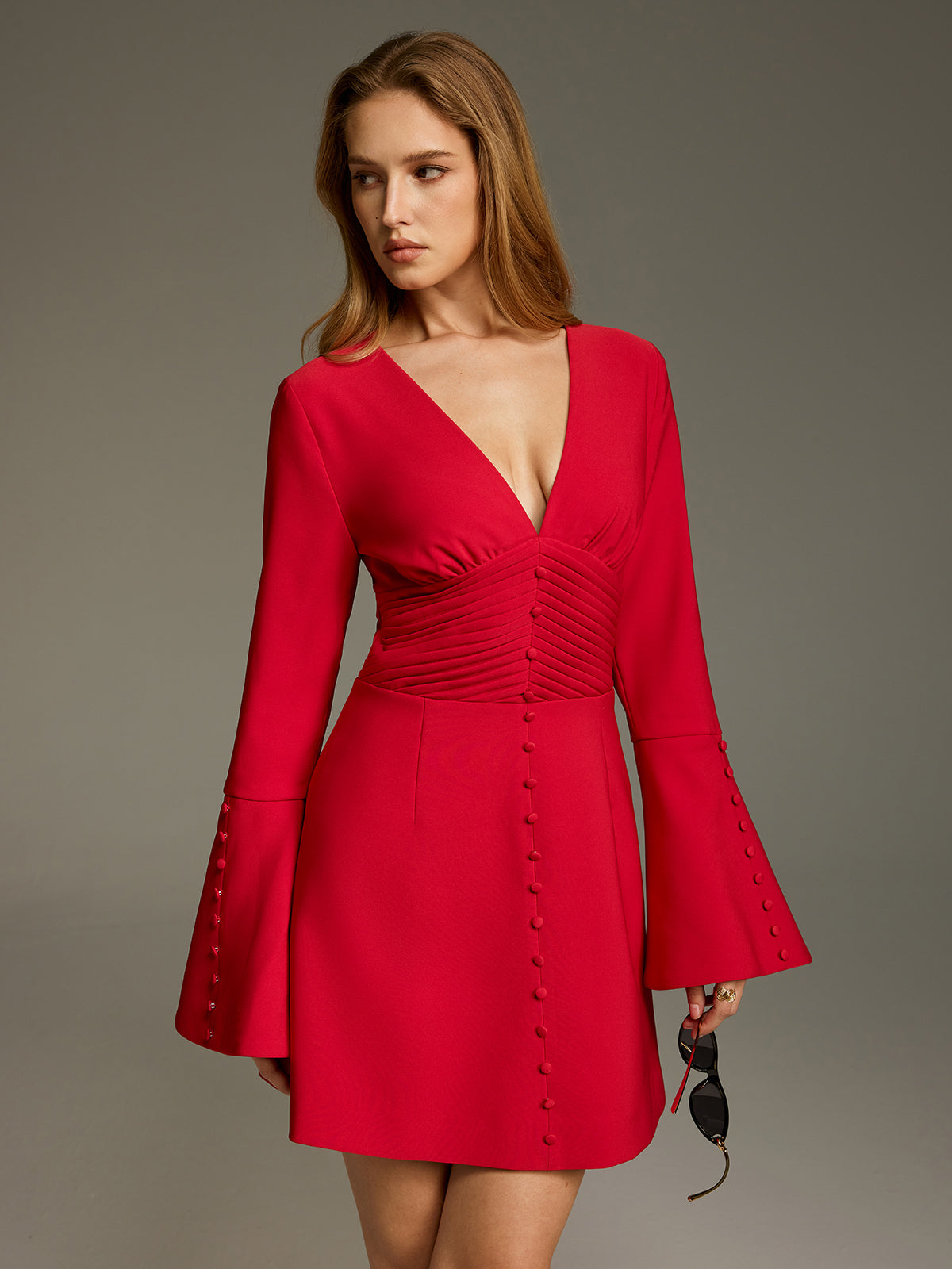 clothing,coll:dresses,coll:night_glam,date,dresses,fall,feminine,in_six_month,invisible zipper,long sleeve,no,not_low_sales,oa251028018,party,photo_model,red,regular,regular fit,short,slight stretch,spring,v-neck,winter,winter hues,women,woven fabric
