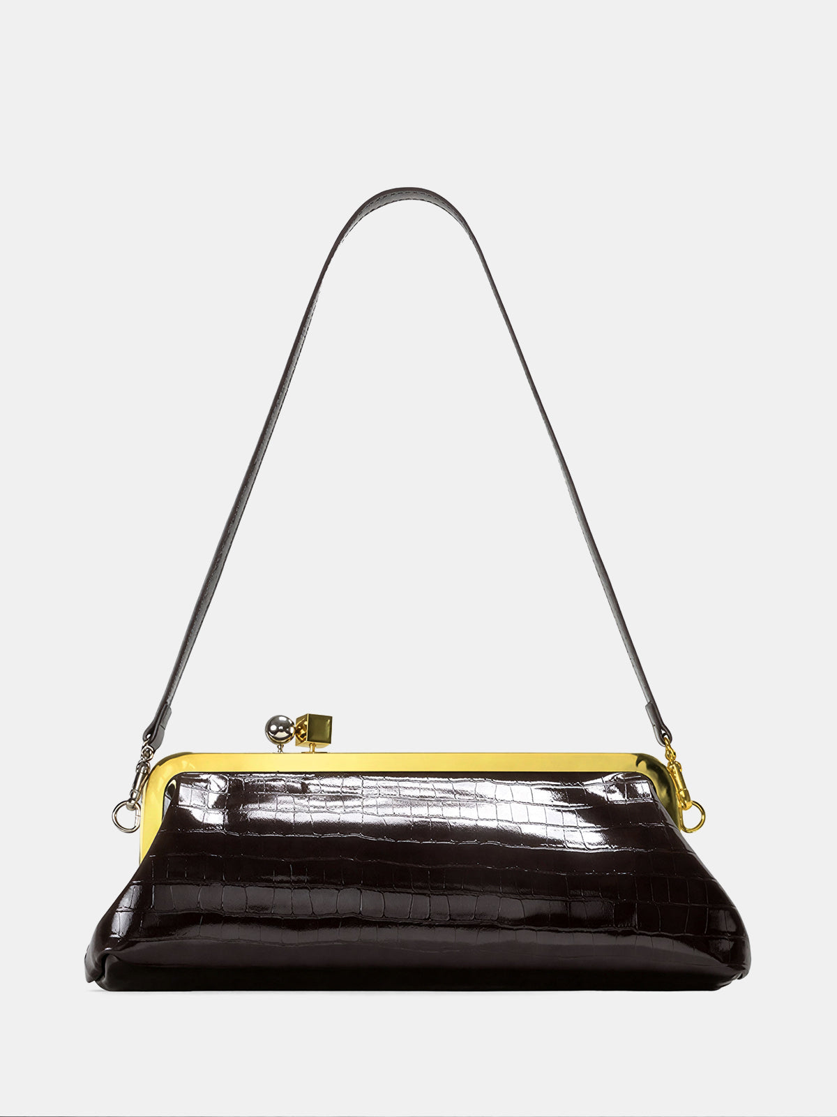 Kiss-Lock Closure Crocodile-Embossed Bag