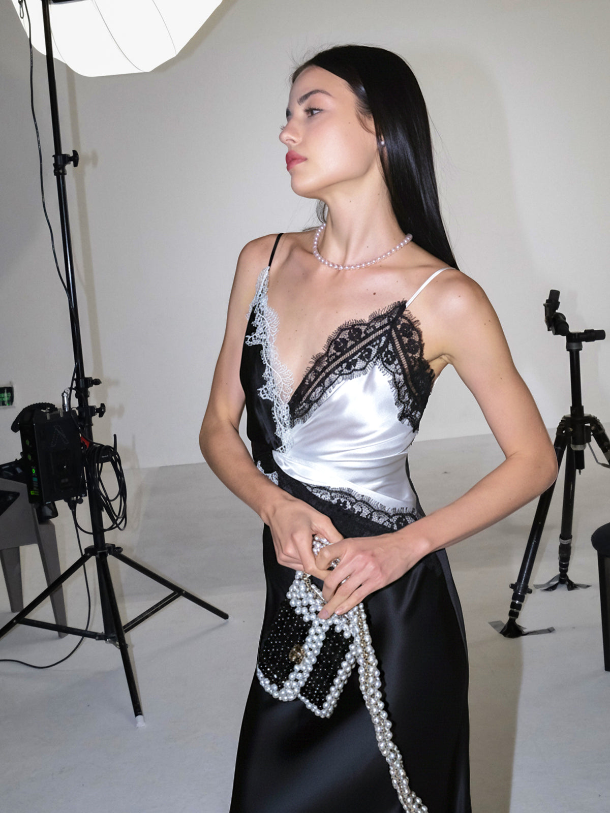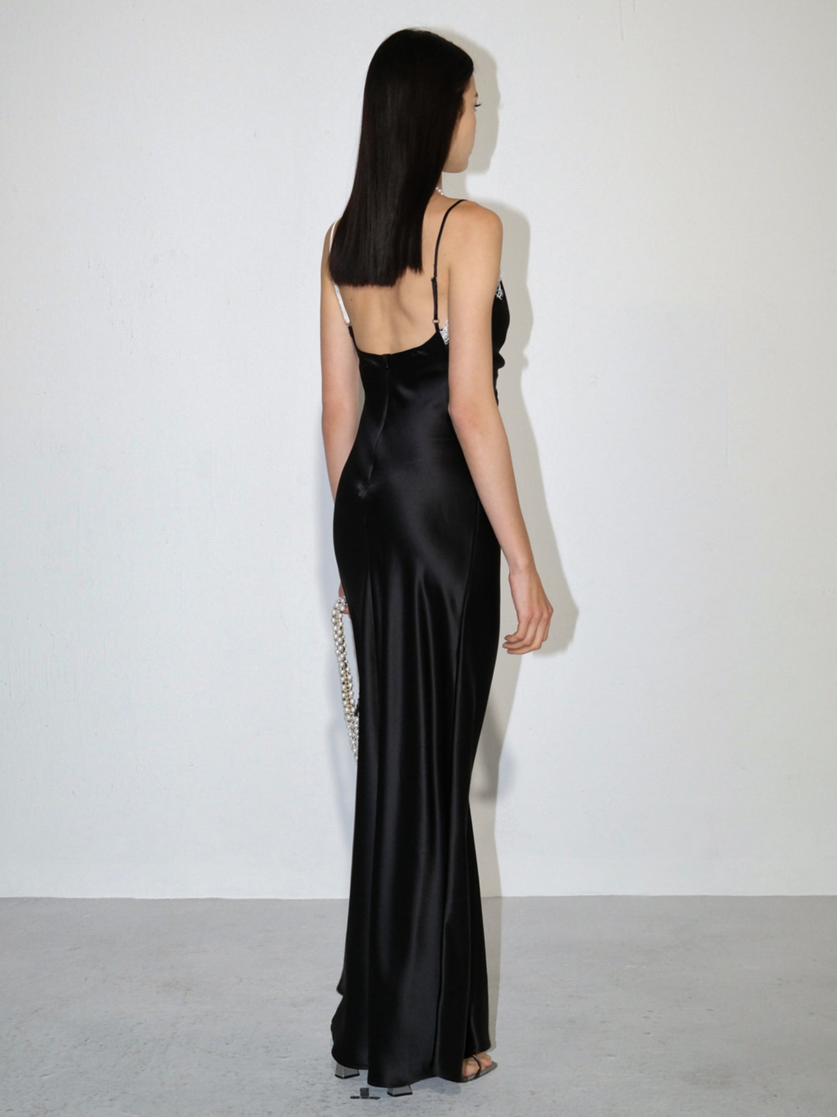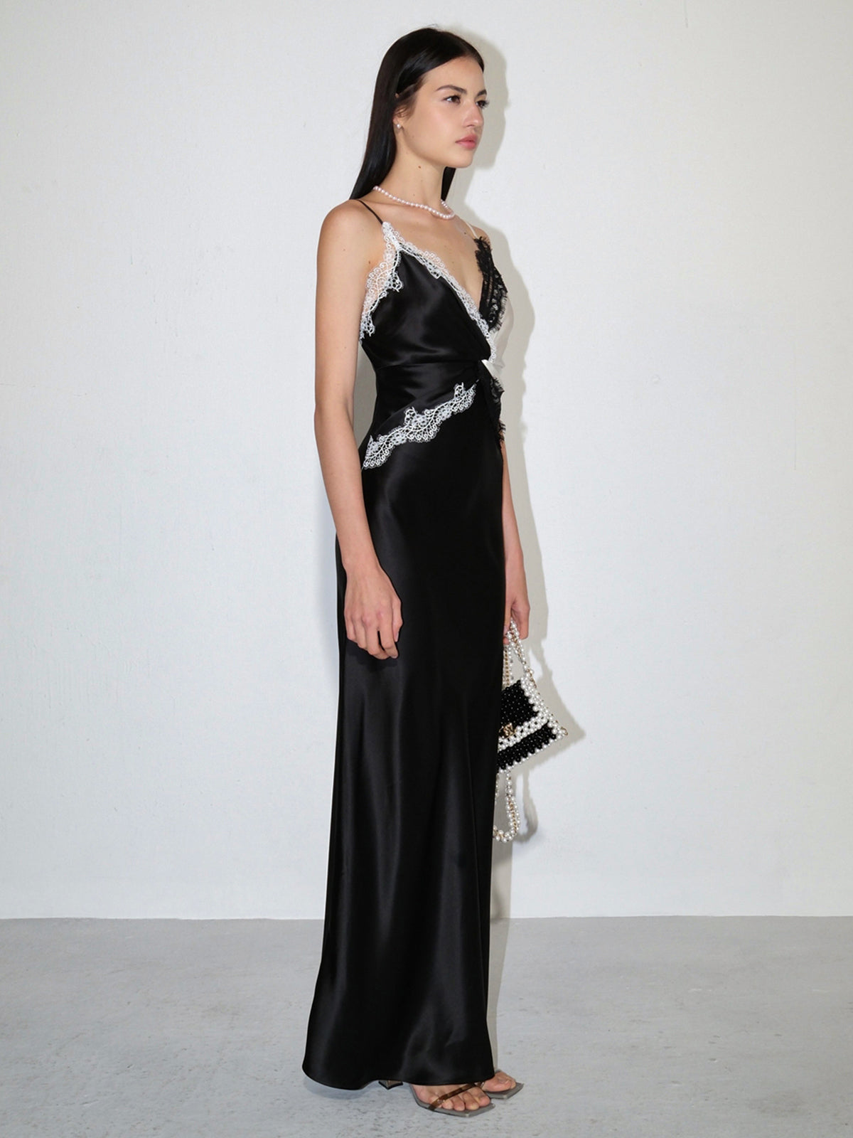 adjustable straps,blackandwhite,clothing,coll:dresses,coll:night_glam,contrast piping / trim,date,dresses,fall,feminine,in_six_month,inner sample,lace,maxi,no,non-stretch,not_low_sales,oa251022060,party,photo_net,regular,regular fit,satin,sleeveless,spring,summer,v-neck,winter,women