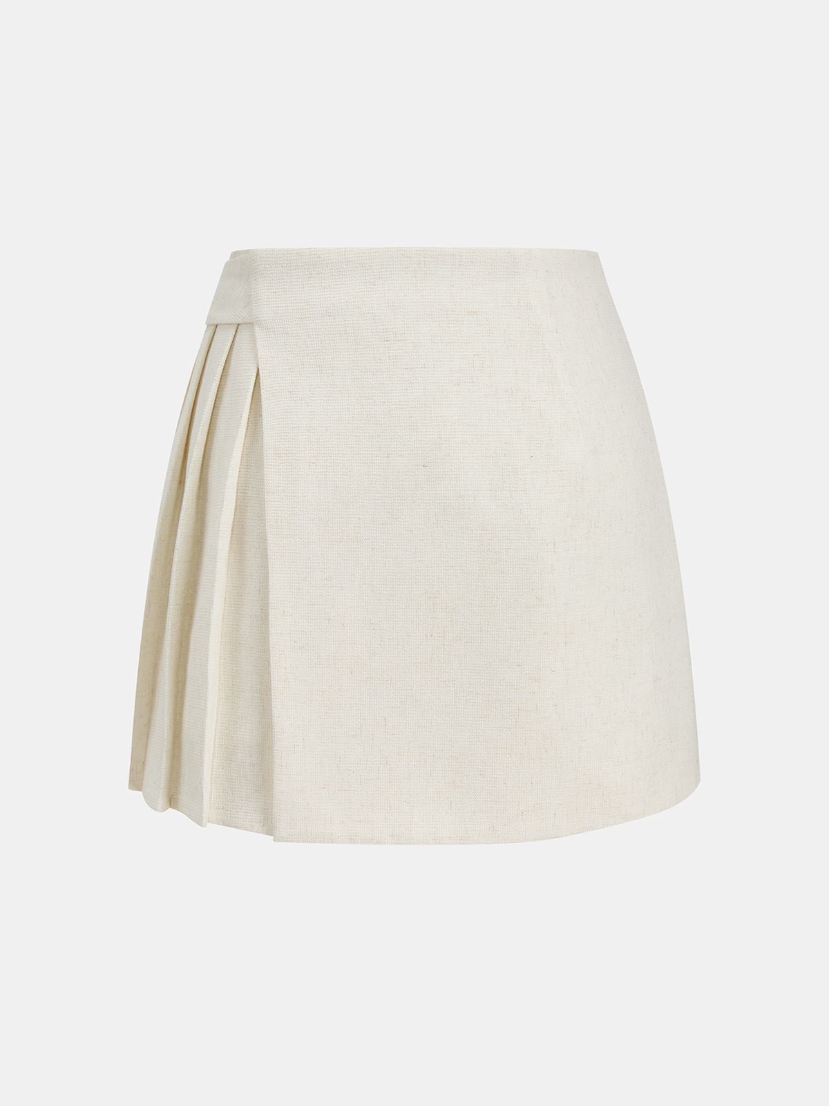 asymmetric,bottoms,casual,clothing,coll:bottoms,coll:linen_cotton,coll:skirts,corpcore,in_six_month,invisible zipper,linen blend,metal detail,minegence,no,not_low_sales,oa260205007,off-white,pleated,regular fit,short,skirts,slight stretch,thin,women