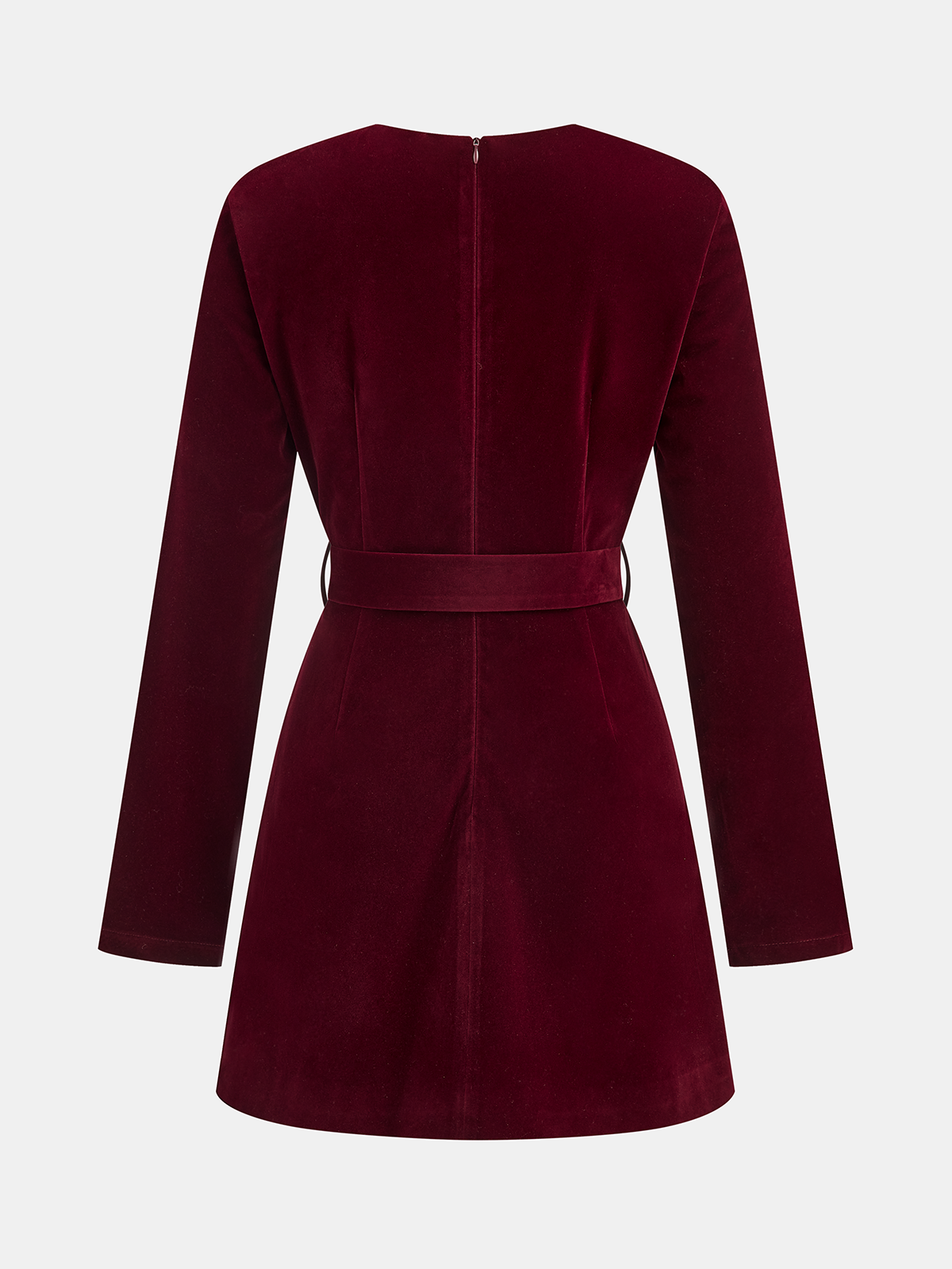 25 christmas,belted,burgundy,casual,clothing,coll:dresses,coll:night_glam,coll:trending,coll:vintage_fabrics,corpcore,crew neck,dresses,fall,in_six_month,inner sample,long sleeve,minegence,no,non-stretch,not_low_sales,oa250905037,party,patchwork,photo_model,regular,regular fit,short,social gleam,velvet,winter,women