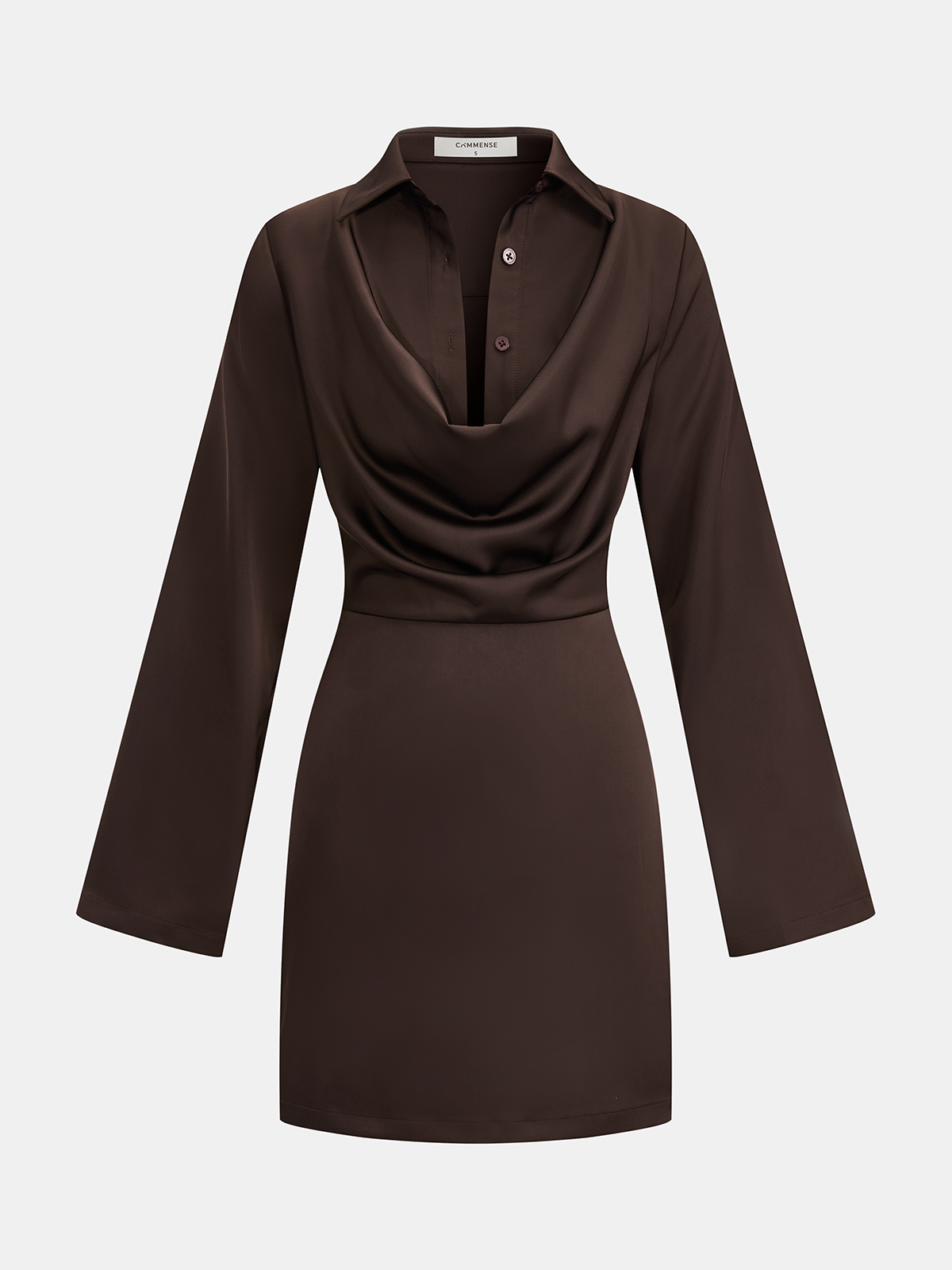 Satin Cowl-Neck Long Sleeve Mini Dress