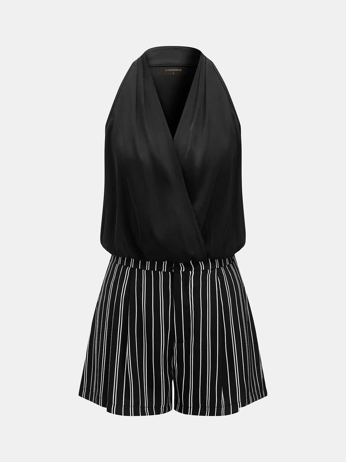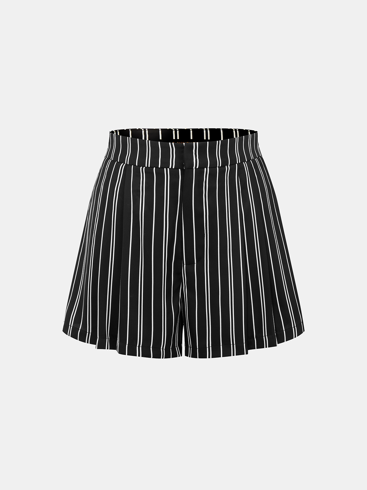 black,clothing,coll:matching_sets,coll:shorts,corpcore,date,in_six_month,minegence,non-stretch,not_low_sales,oa260311052,pleated,regular,regular fit,satin,sets,short sets,stripe,women,woven fabric
