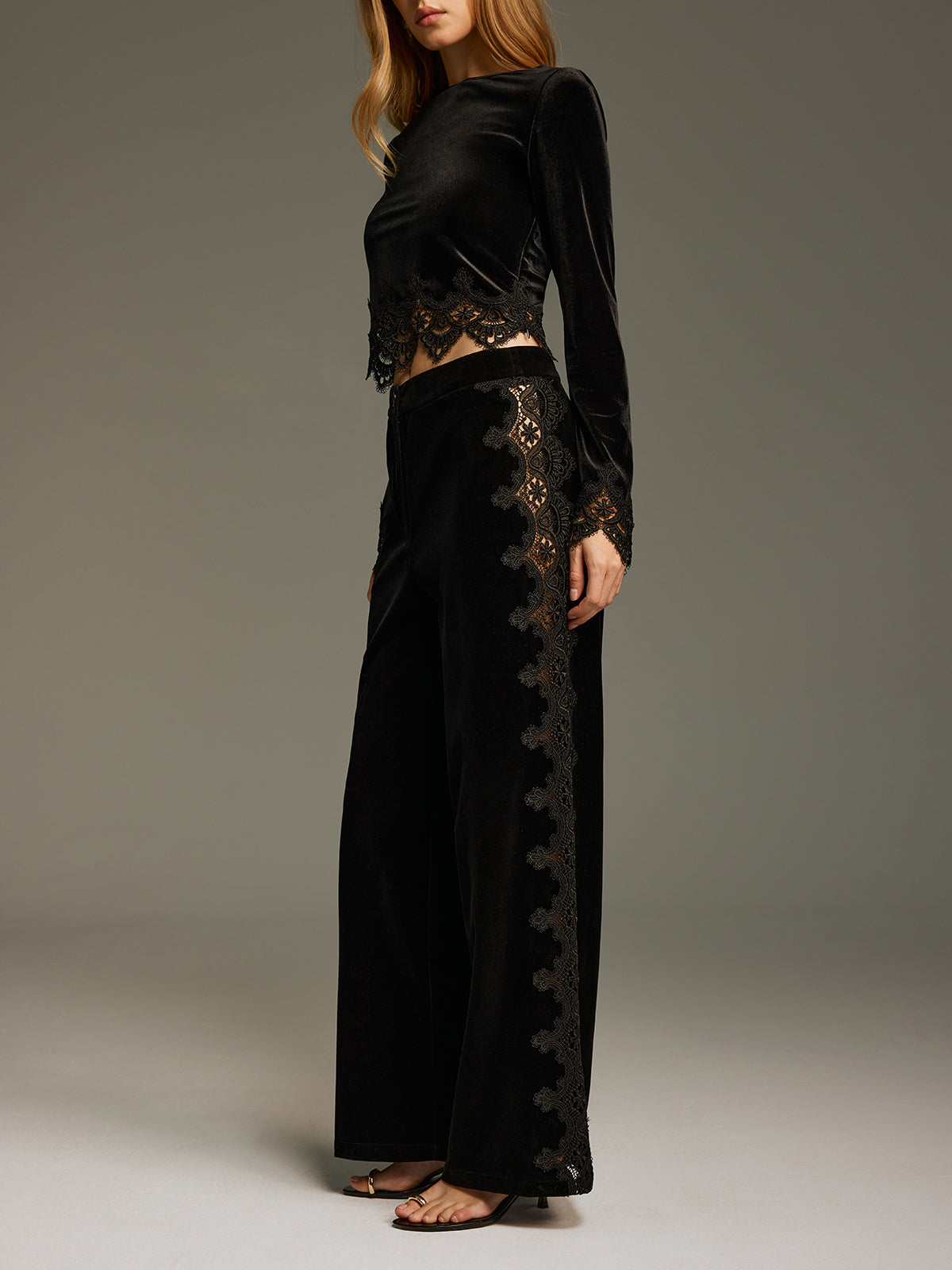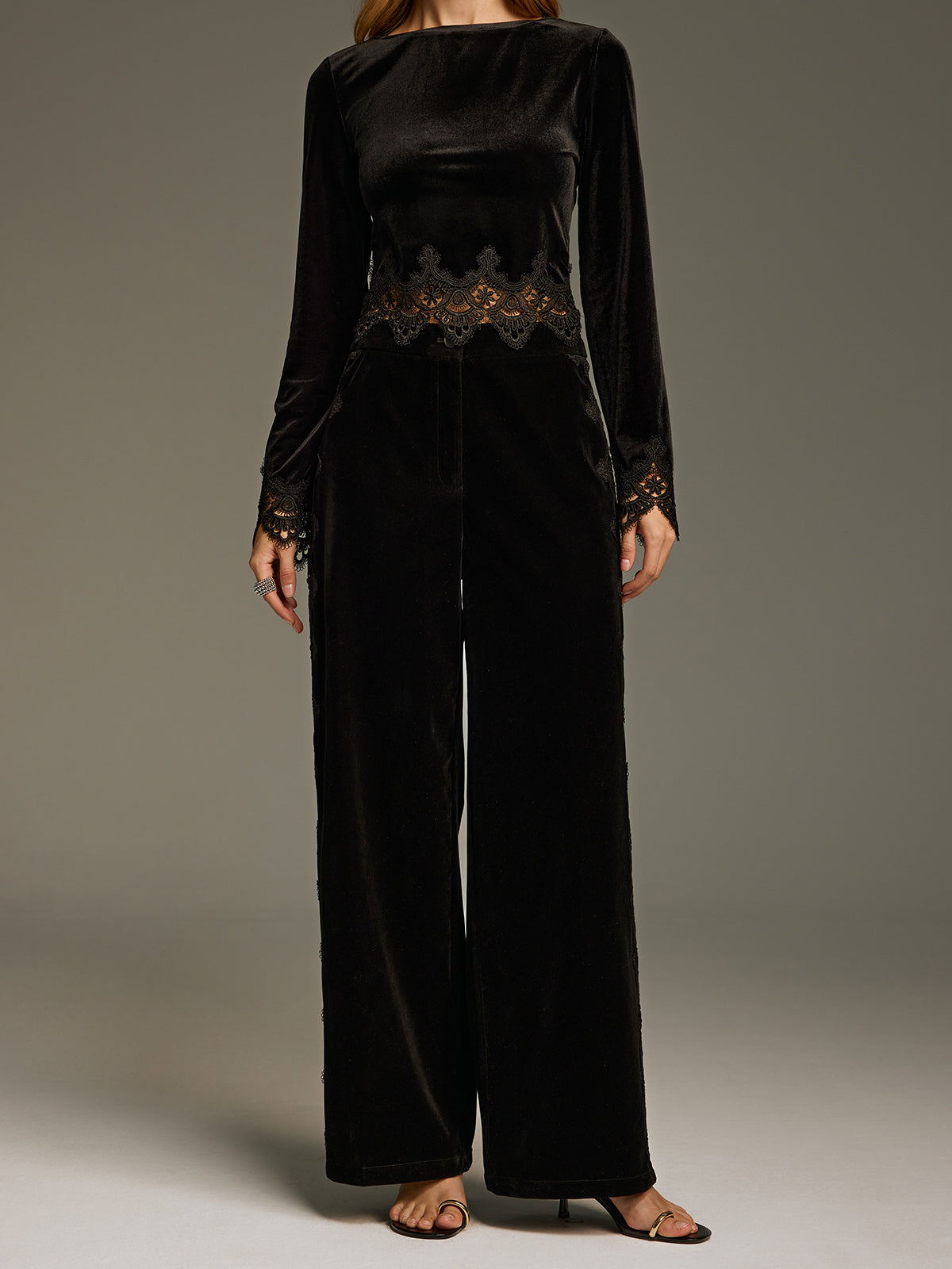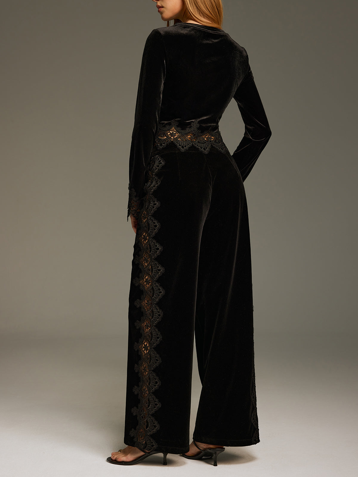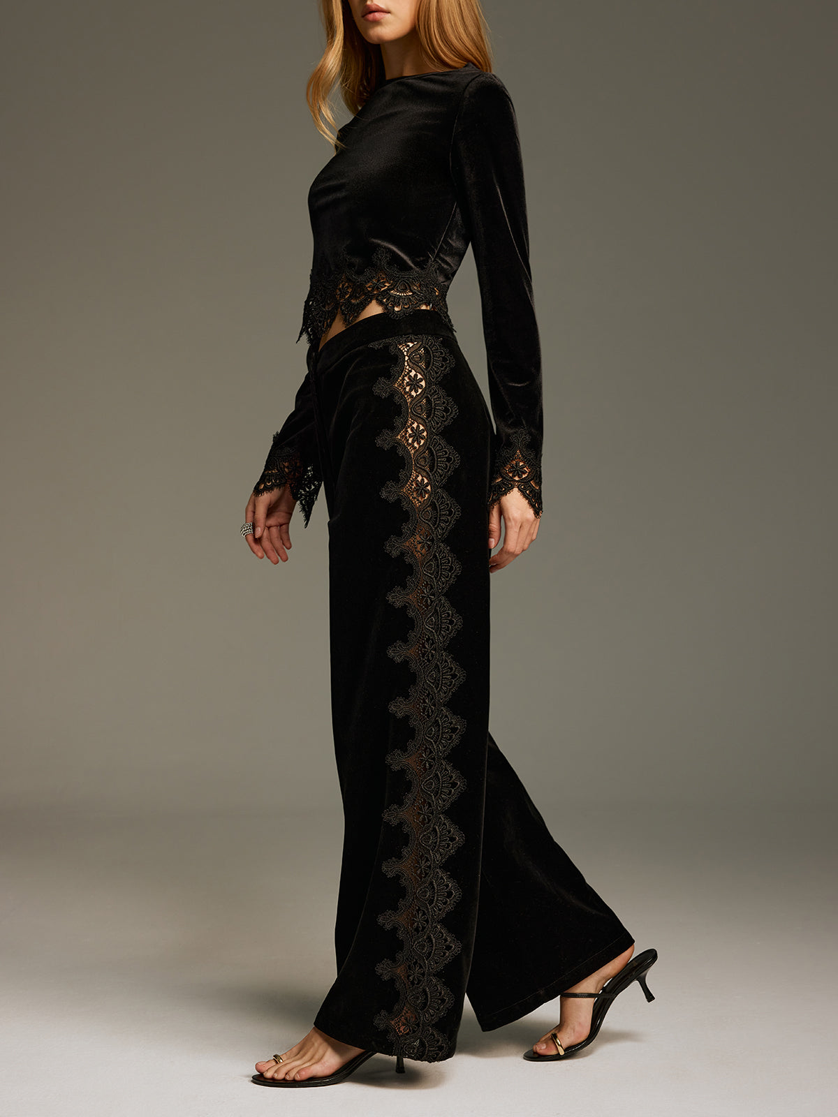 black,bottoms,casual,clothing,coll:bottoms,coll:matching_sets,coll:pants,coll:trending,coll:vintage_fabrics,corpcore,fall,in_six_month,lace,long pants,matching sets,mid waist,minegence,no,non-stretch,not_low_sales,oa251105078,pants,photo_model,regular,regular fit,velvet,winter,women