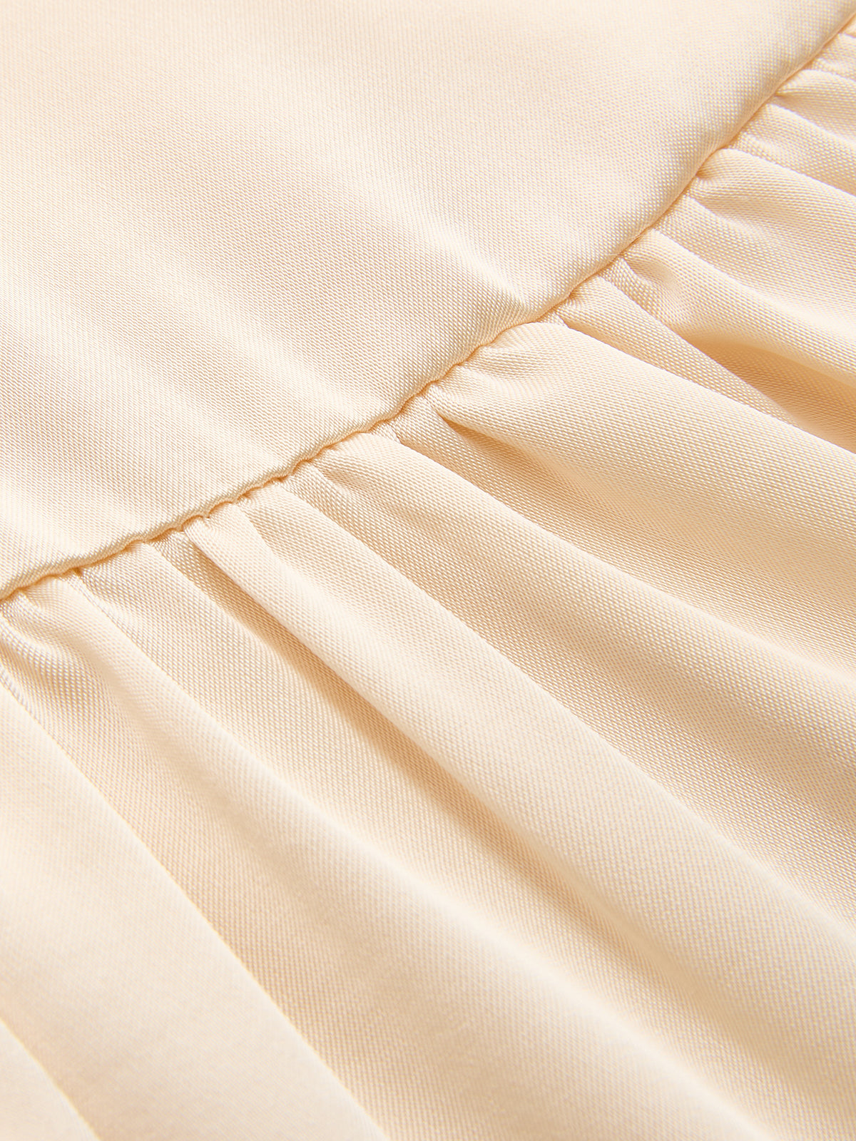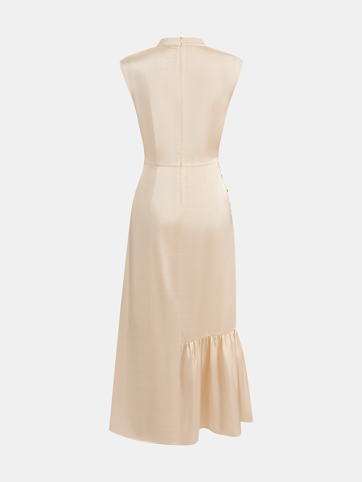 apricot,asymmetric,casual,clothing,coll:dresses,date,dresses,feminine,hollow,in_six_month,invisible zipper,midi,mock neck,not_low_sales,oa251225040,regular fit,ruched,satin,semi-sheer,sleeveless,slight stretch,thin,women