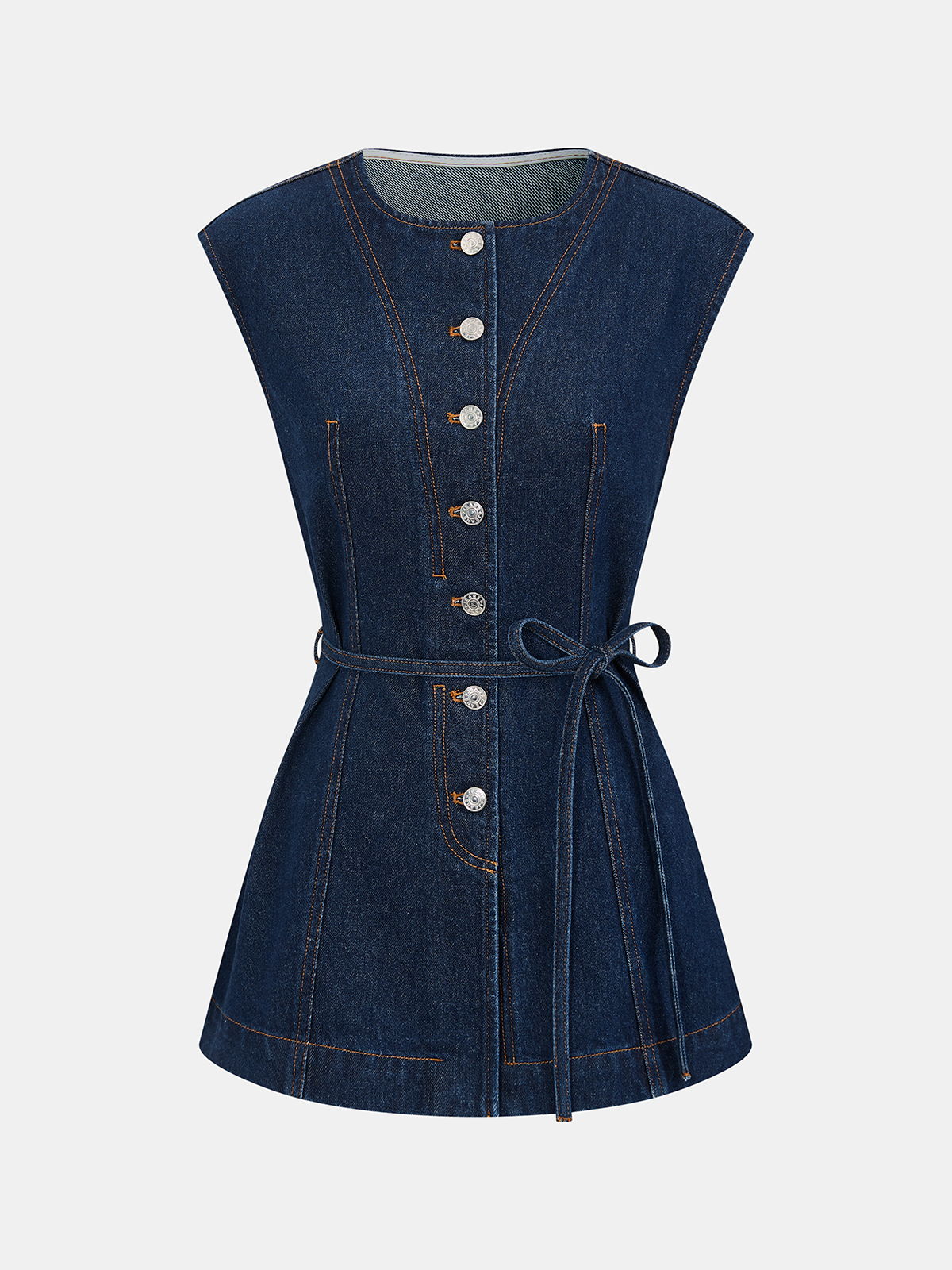 belted,casual,clothing,coll:denim,coll:outerwear,coll:tops,coll:trending,coll:vests,corpcore,denim,fall,feminine,in_six_month,metal detail,navy,non-stretch,not_low_sales,oa251112046,outerwear,regular,regular fit,sleeveless,spring,summer,vests,women