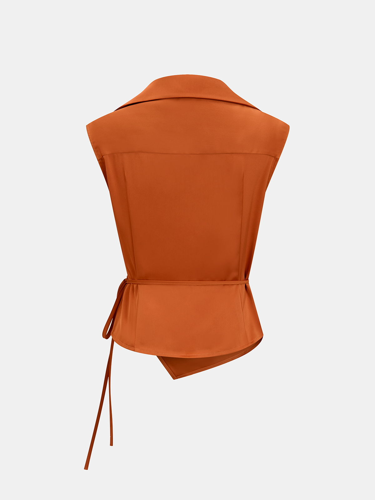 Tie-Waist Satin Sleeveless Wrap Blouse
