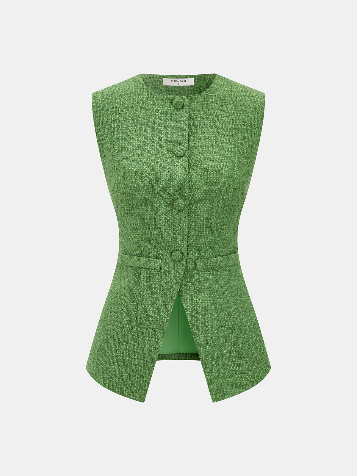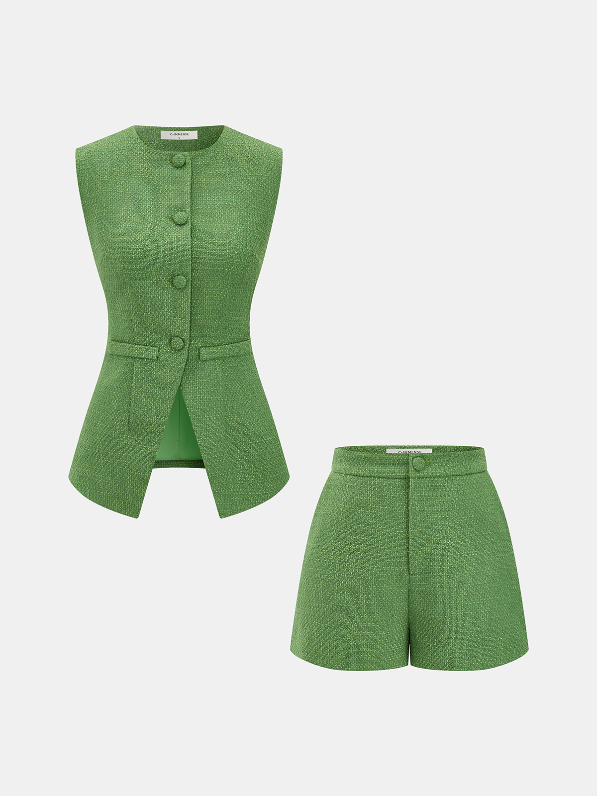 casual,clothing,coll:matching_sets,coll:shorts,coll:vests,coll:vintage_fabrics,corpcore,green,in_six_month,minegence,non-stretch,not_low_sales,oa251112035,regular,regular fit,sets,short pants,short sets,sleeveless,summer hues,tweed,women