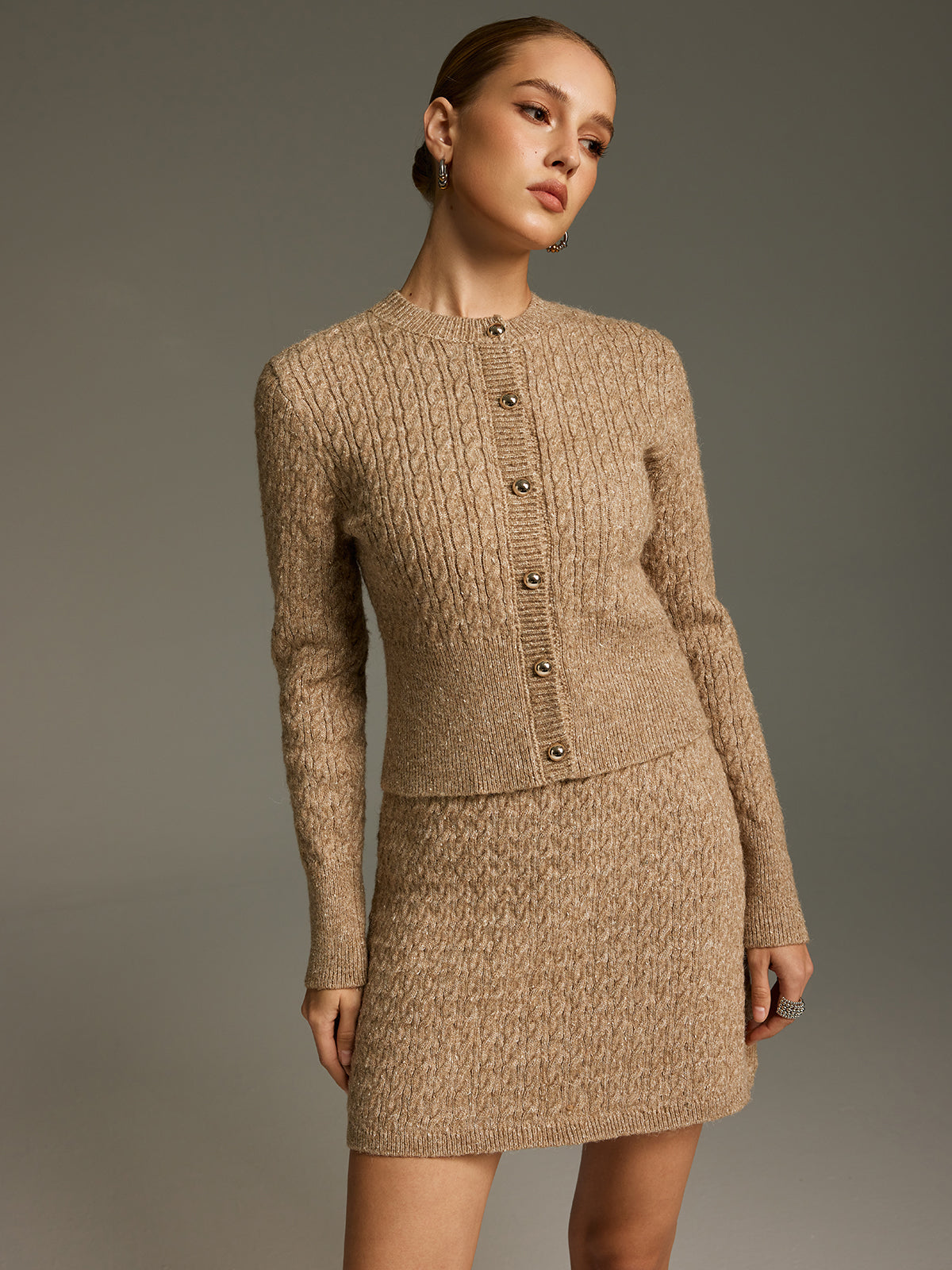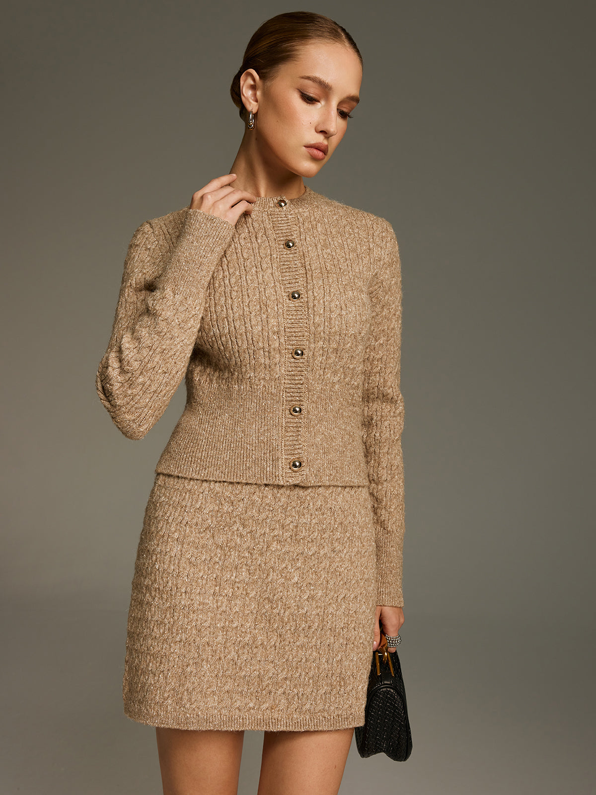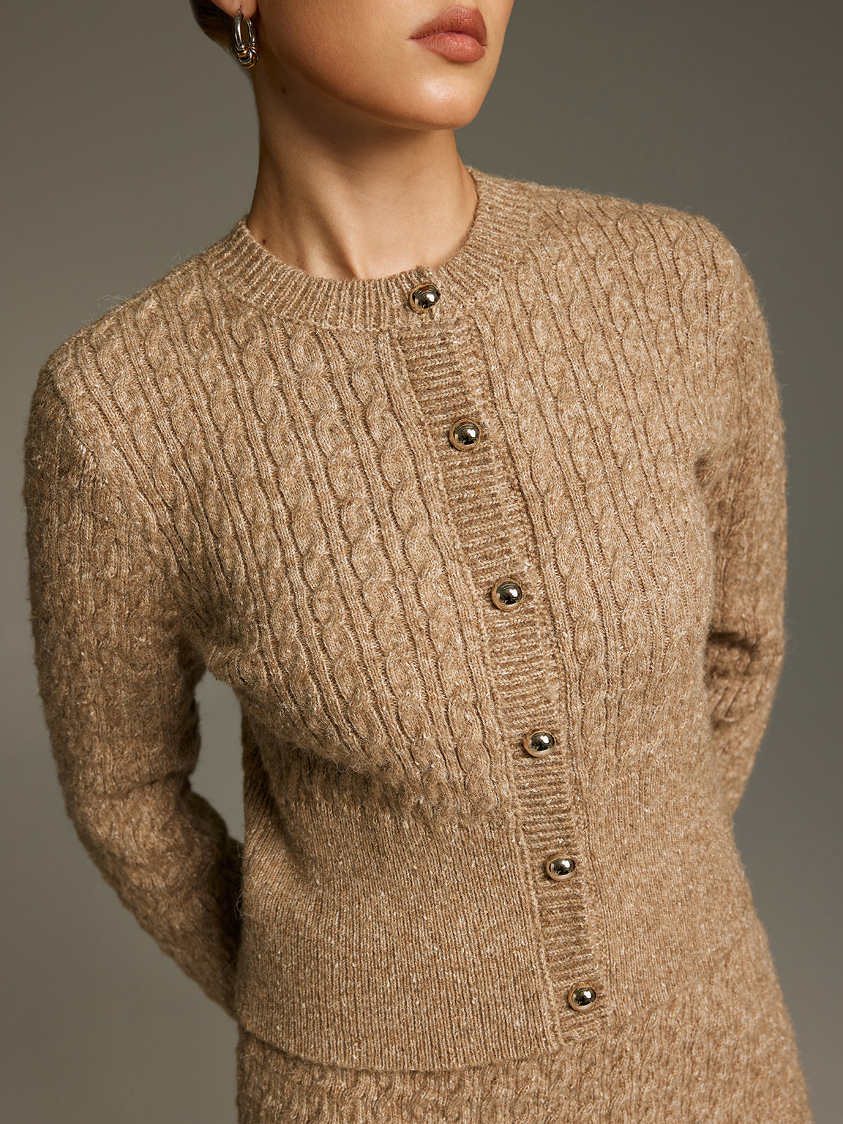 casual,clothing,coll:knitwear,coll:matching_sets,coll:sweater_tops,coll:sweaters_cardigans,coll:tops,coll:trending,date,fall,feminine,in_six_month,khaki,knit,metal detail,not_low_sales,oa251118016,photo_model,regular,regular fit,slight stretch,spring,sweater co-ords,sweaters & cardigans,winter,women