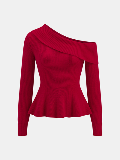 Off-Shoulder Faux Leather Waistband Slit Maxi Dress
