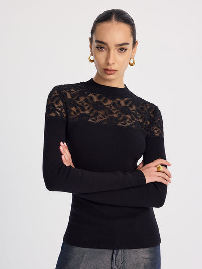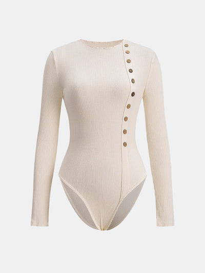 Asymmetric Neck Mesh Long-Sleeve Bodysuit