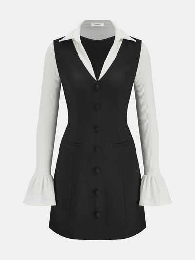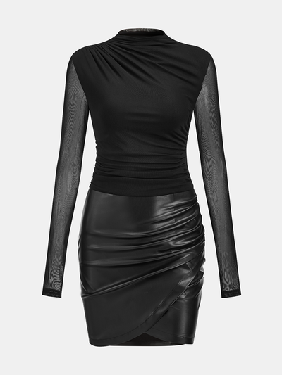 Faux Leather Panel Knit Sleeveless Mini Dress