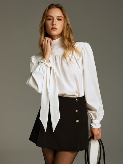 Semi-Sheer Chiffon Leopard Print Tie Neck Shirt