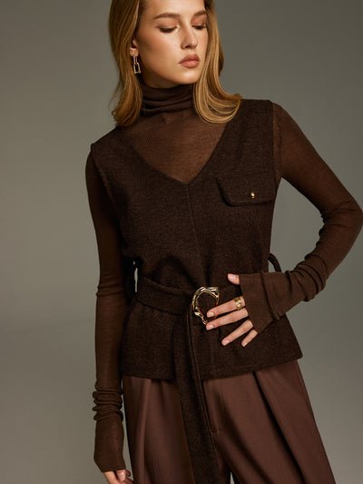 Belted Metal Button Faux Leather Sleeveless Maxi Dress