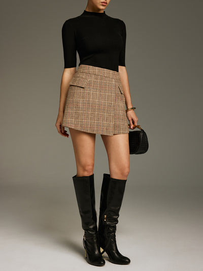 Houndstooth Sleeveless Pleated Hem Mini Dress