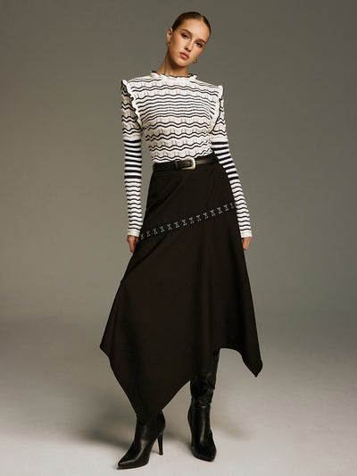 Belted Mesh Hem Faux Leather Maxi Skirt