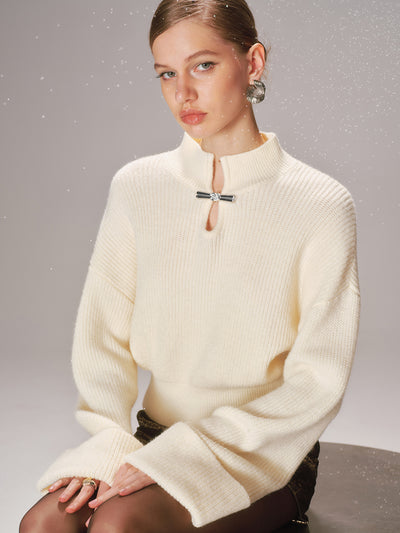 Elastic-Waist Button-Front Cropped Sweatshirt