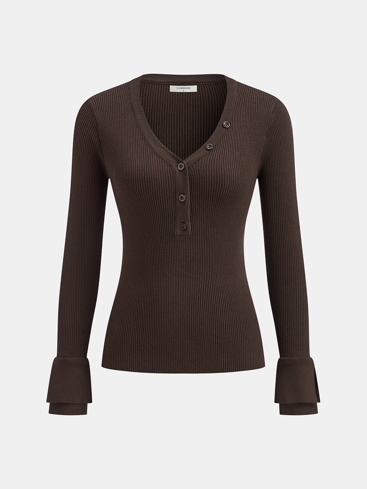 Button-Front Crew Neck Ribbed Knit Cardigan