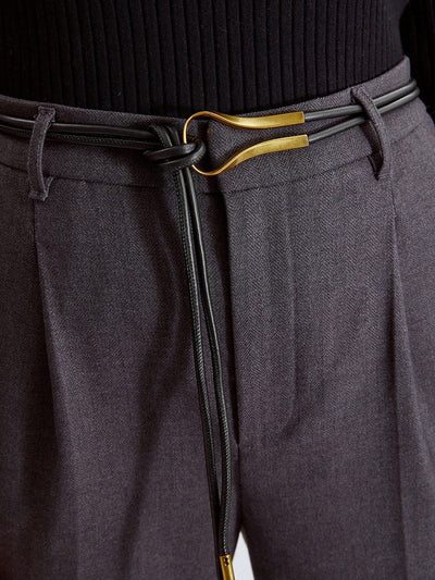 Asymmetrical Waistband Pleated Wide Leg Pants