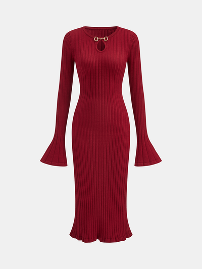 Bell Sleeve Mermaid Hem Horsebit Knit Midi Dress