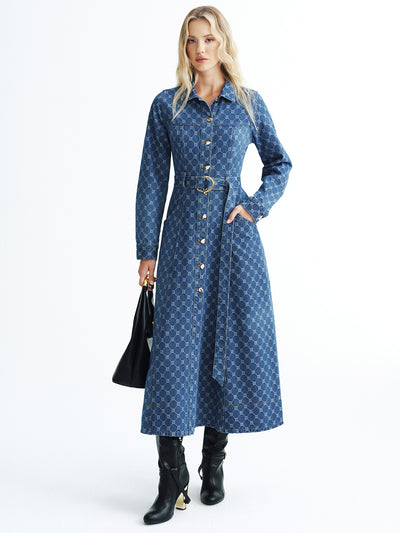 Metal Detail Tie-Belt Oversized Long Trench Coat