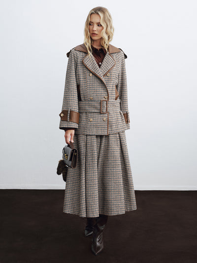 High-Waist Belted Houndstooth Wide-Leg Pants