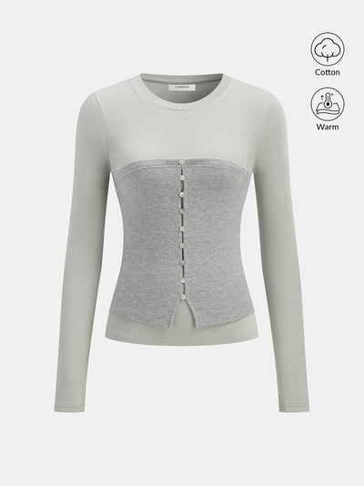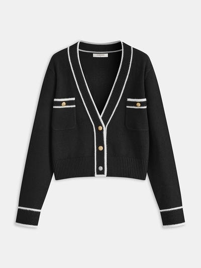 Contrast Trim Metal Button Wool-Blend Cardigan