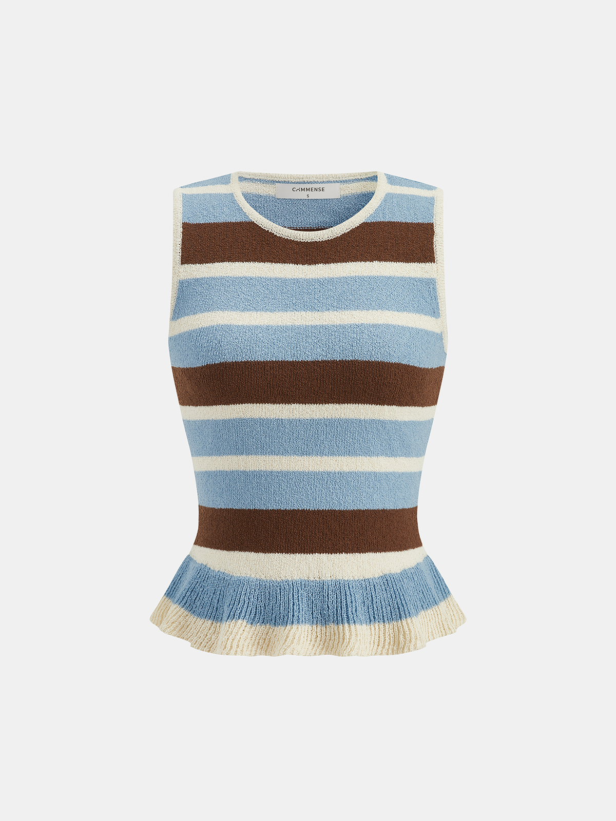 Striped Ruffle Hem Sleeveless Knit Top