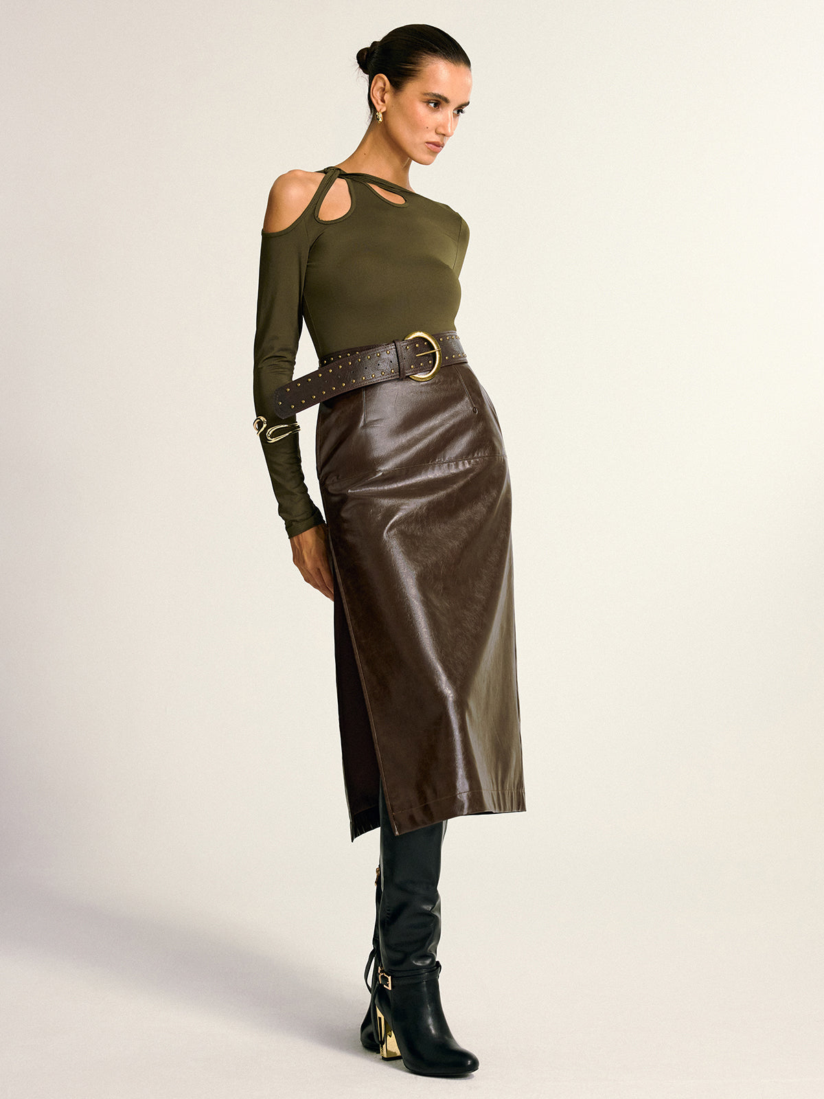 Asymmetric Cut-Out Cold Shoulder Blouse
