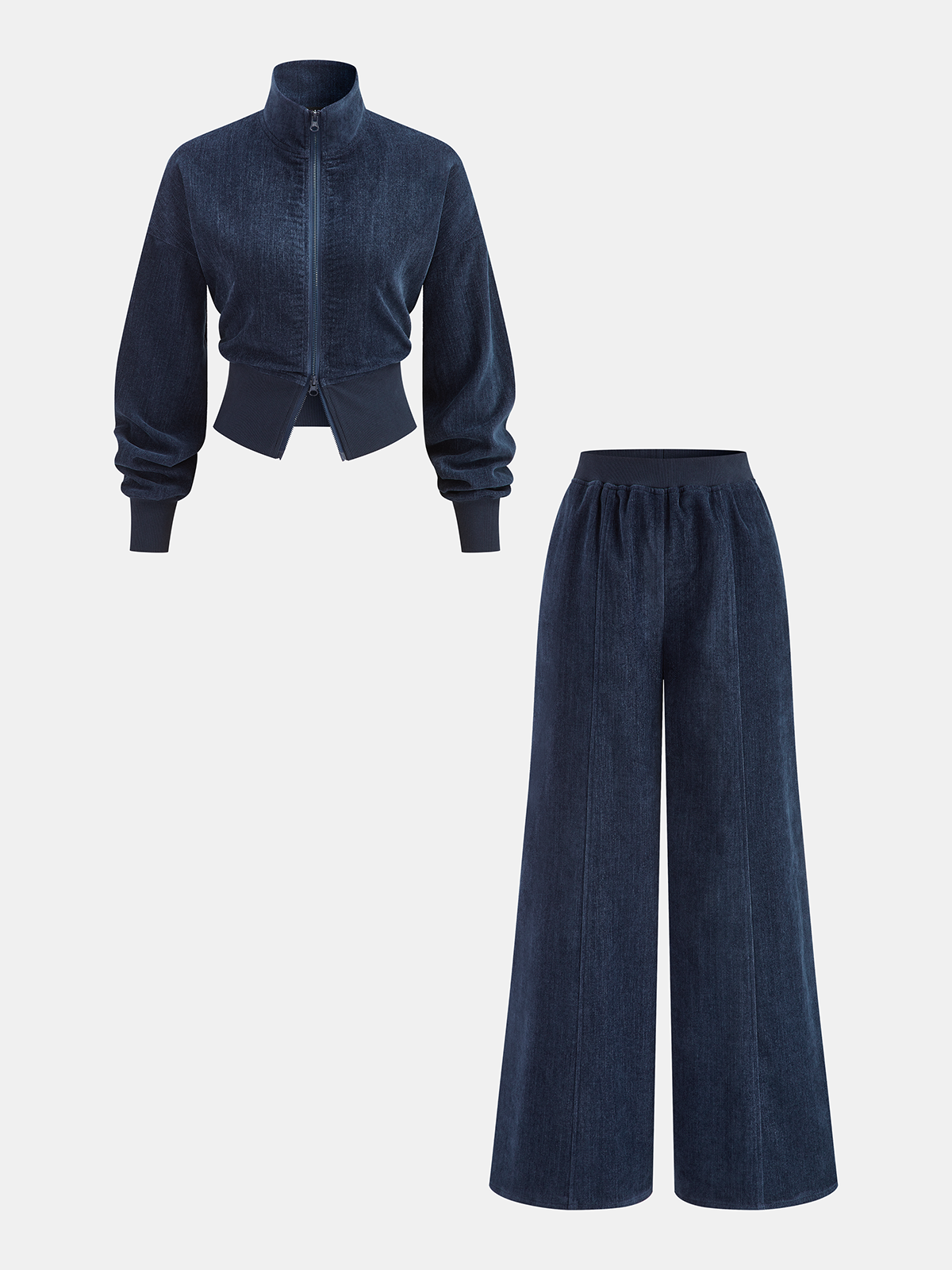 Velvet Zip-Up Jacket & Wide-Leg Pants Set