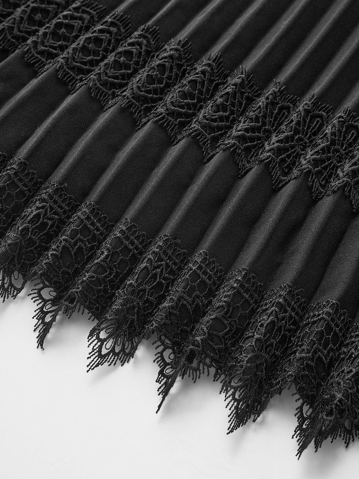 black,clothing,coll:dresses,corpcore,date,dresses,fall,feminine,in_six_month,invisible zipper,lace,no,non-stretch,not_low_sales,oa251031062,regular,regular fit,ruffle,short,sleeveless,spring,stand collar,winter,women,woven fabric