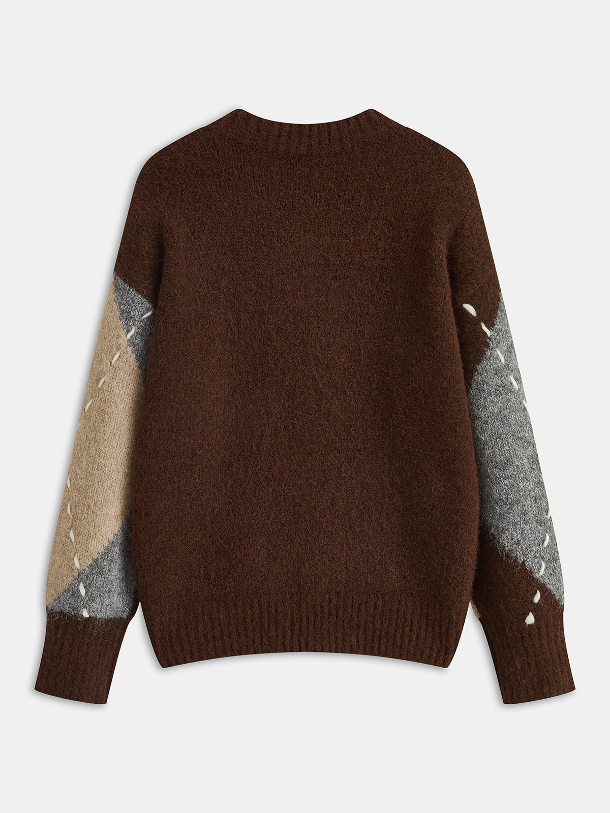 casual,clothing,coll:knitwear,coll:plaids_polka,coll:sweater_tops,coll:sweaters_cardigans,coll:tops,coll:trending,dark brown,fall,feminine,in_six_month,knit,knit tops,medium stretch,not_low_sales,oa251021078,plaid,regular,shift,sweaters & cardigans,warm,winter,winter hues,women,woollen blend