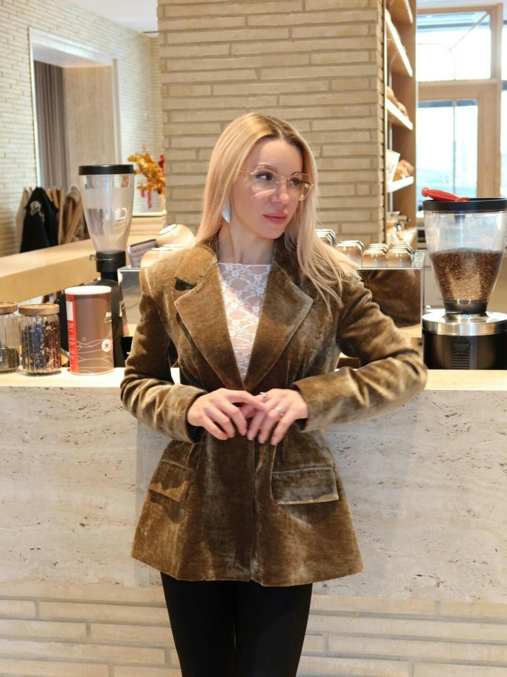 Now this is my favorite piece in my wardrobe. The blazer is thick, has a beautiful color, and I feel like a millionaire’s wife in it.