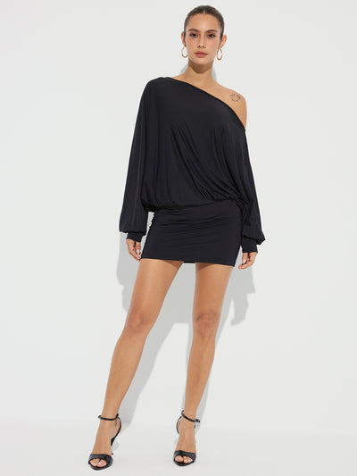 One-Shoulder Ruched Long Sleeve Mini Dress