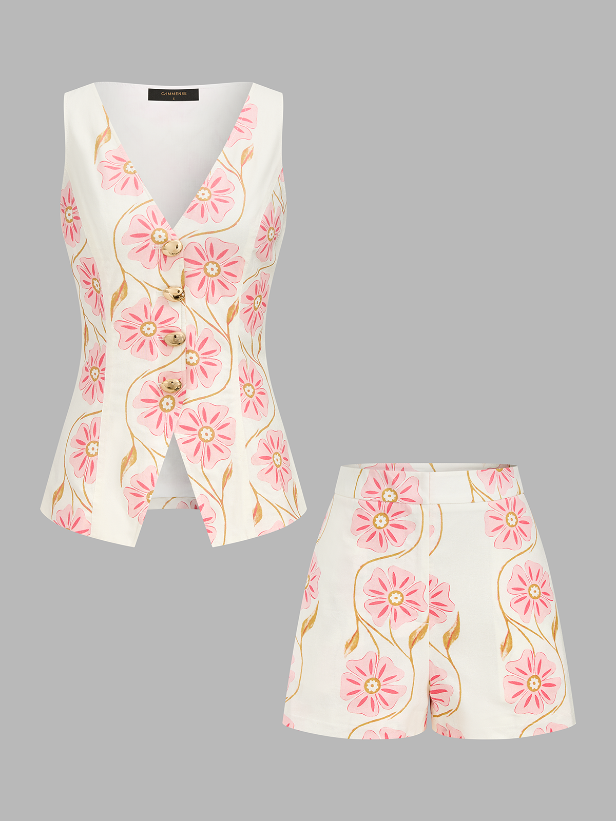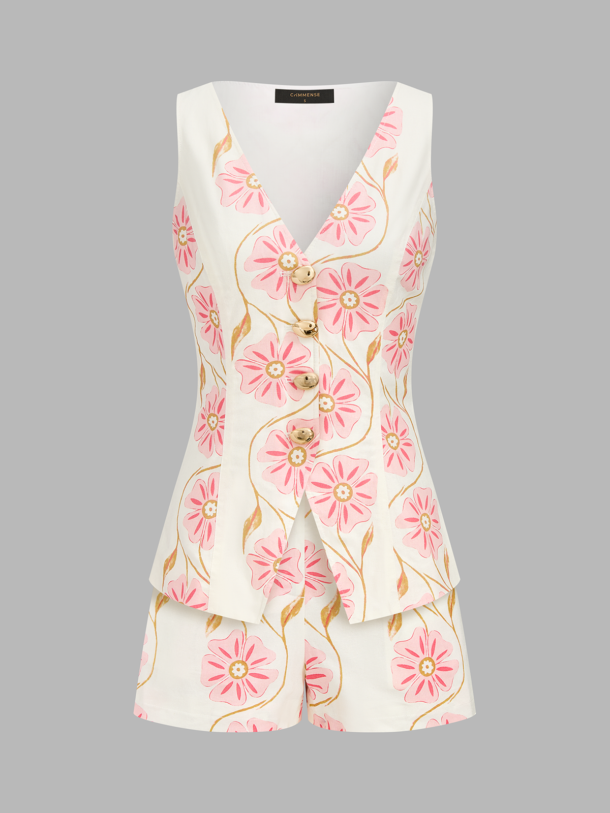 clothing,coll:floral_gradient,coll:linen_cotton,coll:matching_sets,coll:shorts,coll:vacation,coll:vests,coll:weekend_getaway,cotton&linen,date,feminine,floral print,in_six_month,metal detail,non-stretch,not_low_sales,oa260303051,regular,regular fit,sets,short sets,summer hues,vacation,white,women