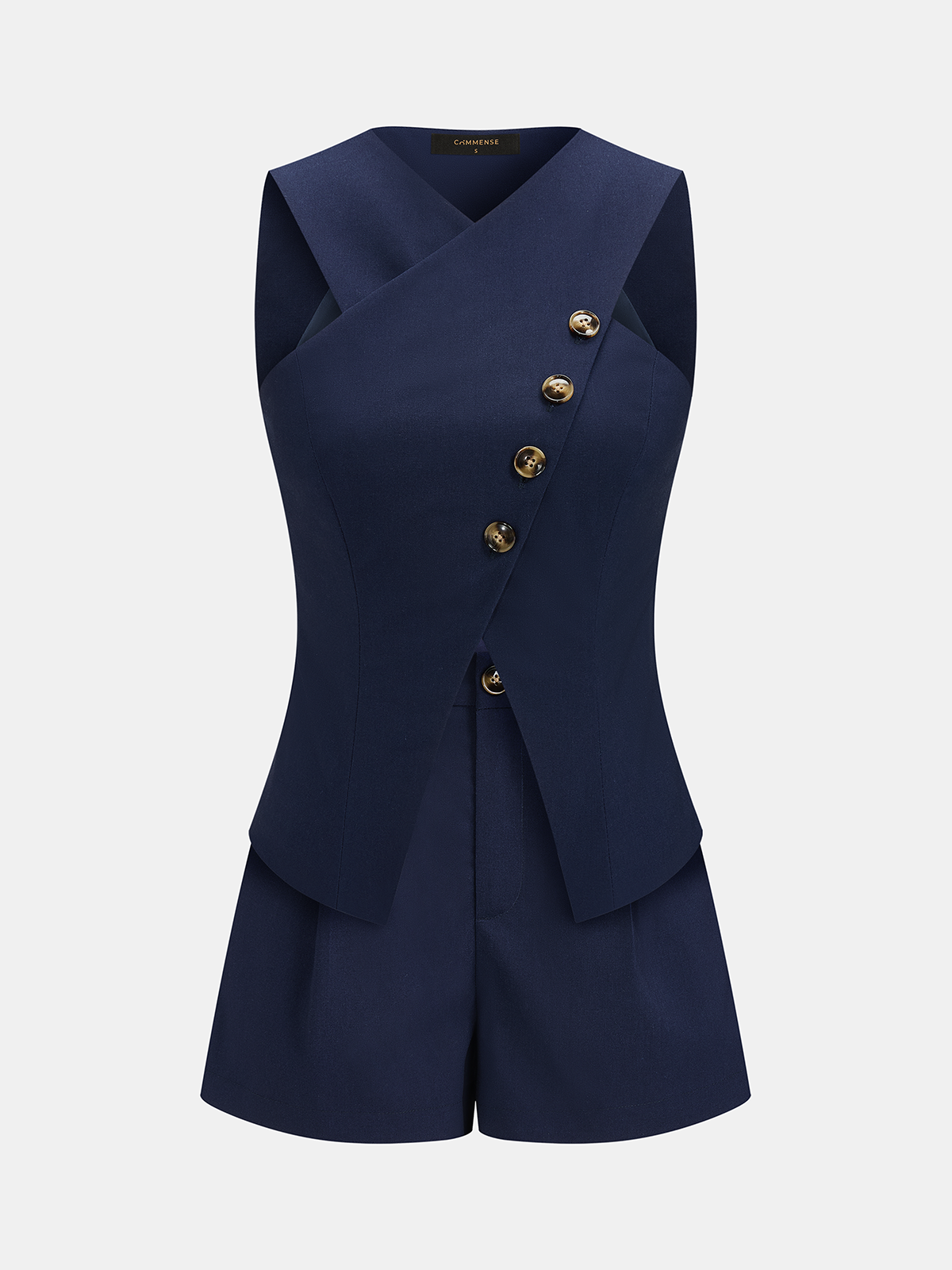 asymmetric,clothing,coll:linen_cotton,coll:matching_sets,coll:shorts,coll:vests,corpcore,cross wrap,date,in_six_month,invisible zipper,linen blend,minegence,navy,non-stretch,not_low_sales,oa260325089,regular fit,sets,short sets,thin,women