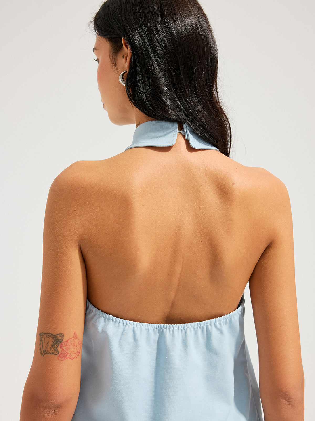 Linen Blend Halter Top & Belted Shorts Set