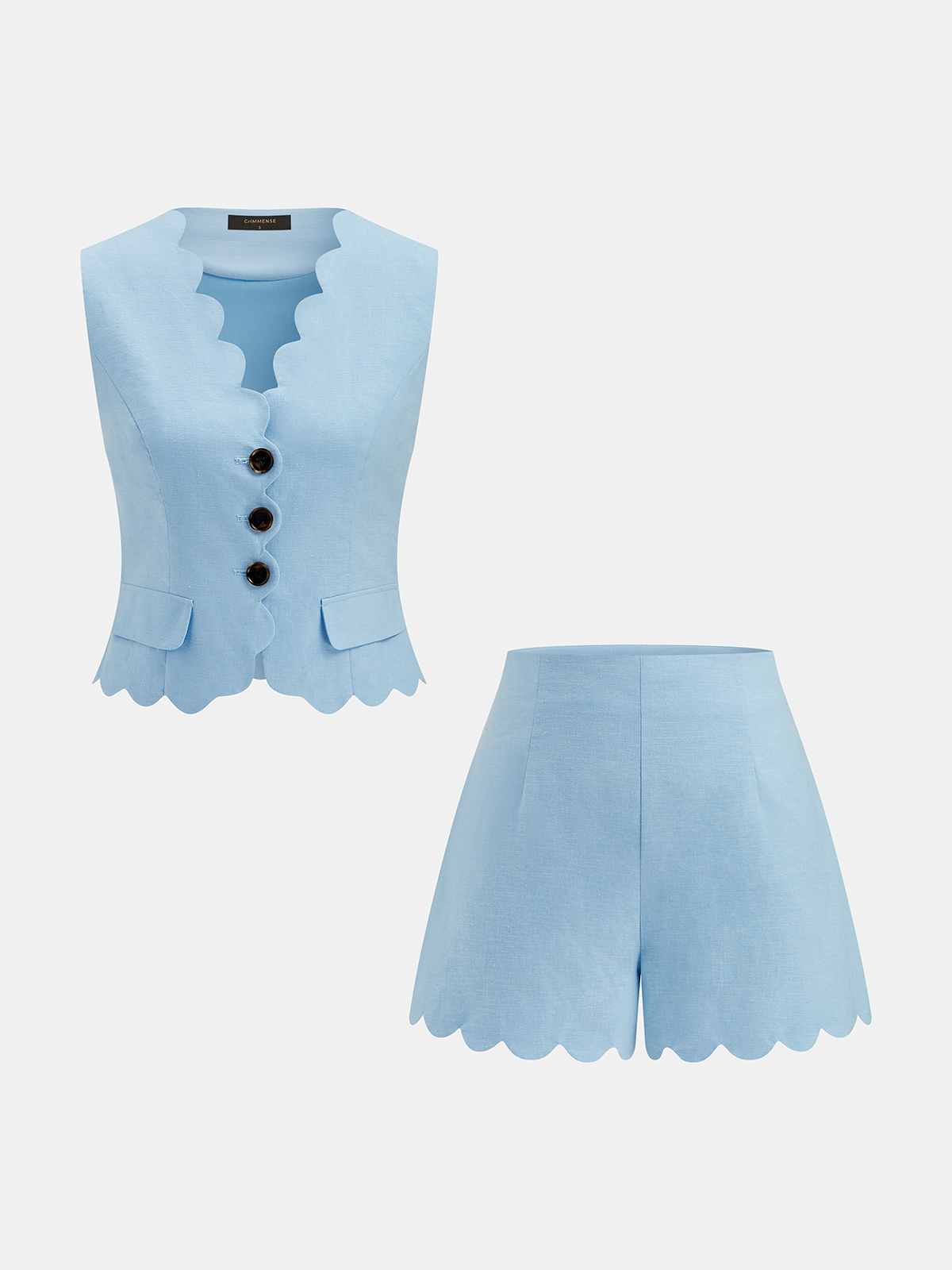 casual,clothing,coll:linen_cotton,coll:matching_sets,coll:shorts,coll:vests,corpcore,cotton&linen,in_six_month,invisible zipper,lightblue,minegence,non-stretch,not_low_sales,oa260317015,photo_ai,regular,regular fit,scalloped edge,sets,short sets,summer hues,women