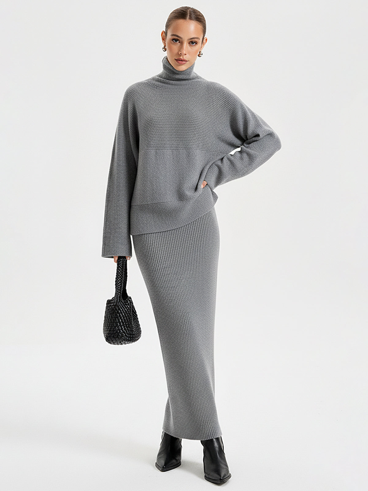 casual,clothing,coll:knitwear,coll:matching_sets,coll:skirts,coll:trending,corpcore,dark brown,fall,grey,in_six_month,inner sample,knit,medium stretch,metal detail,minegence,not_low_sales,oa250819049,photo_model,regular,serena-选品,sets,skirt sets,slim fit,warm,winter,women