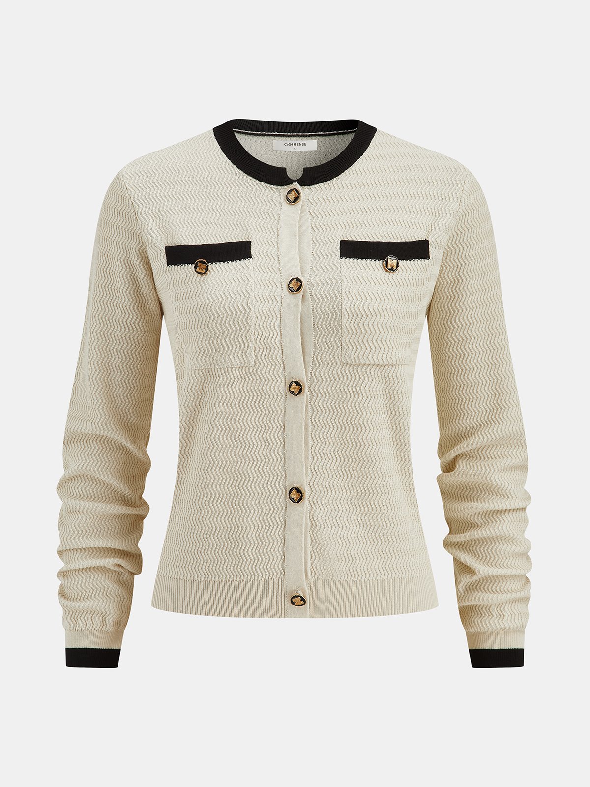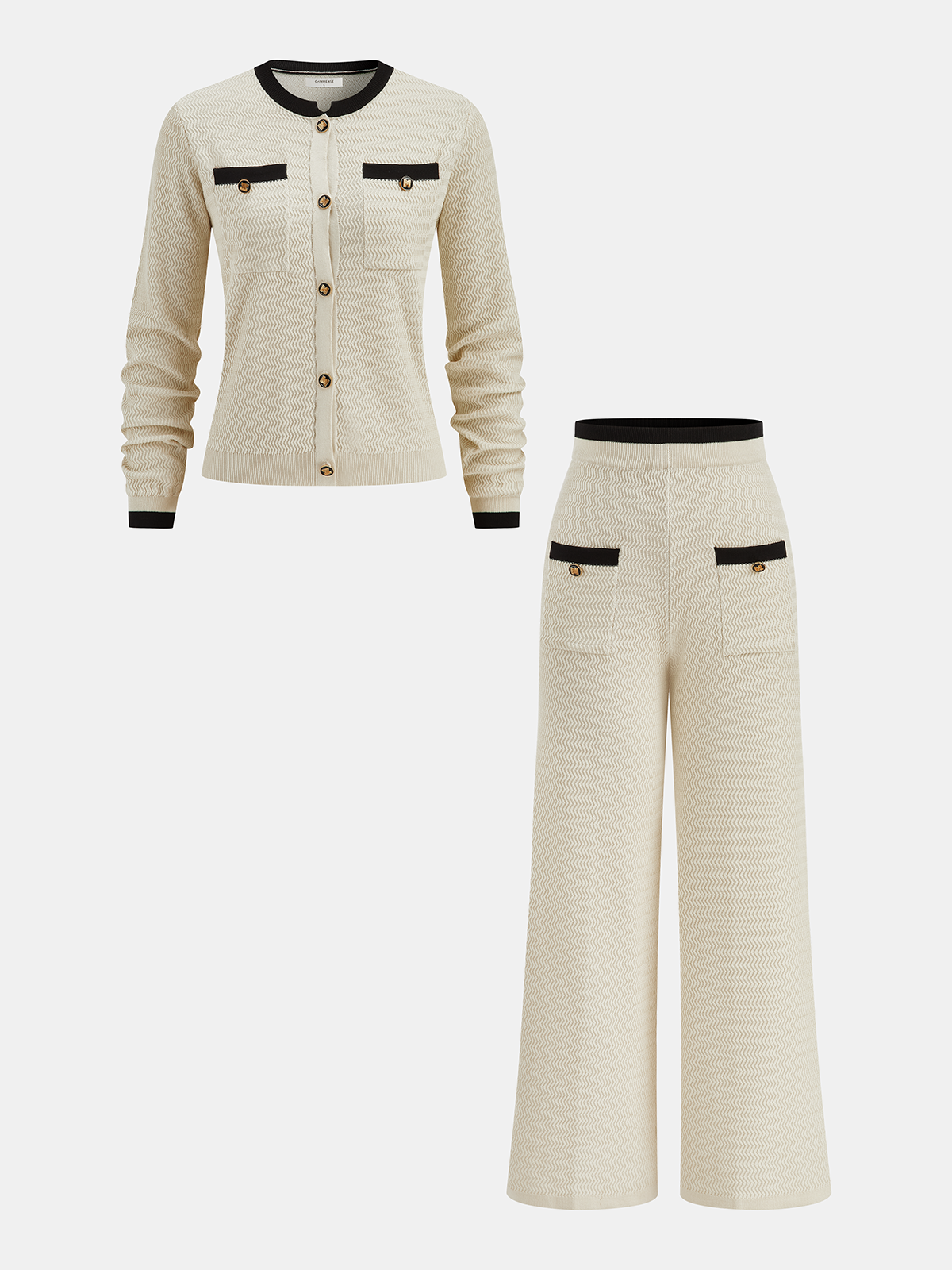 Textured Chevron Knit Pocketed Sweater Co-ords
