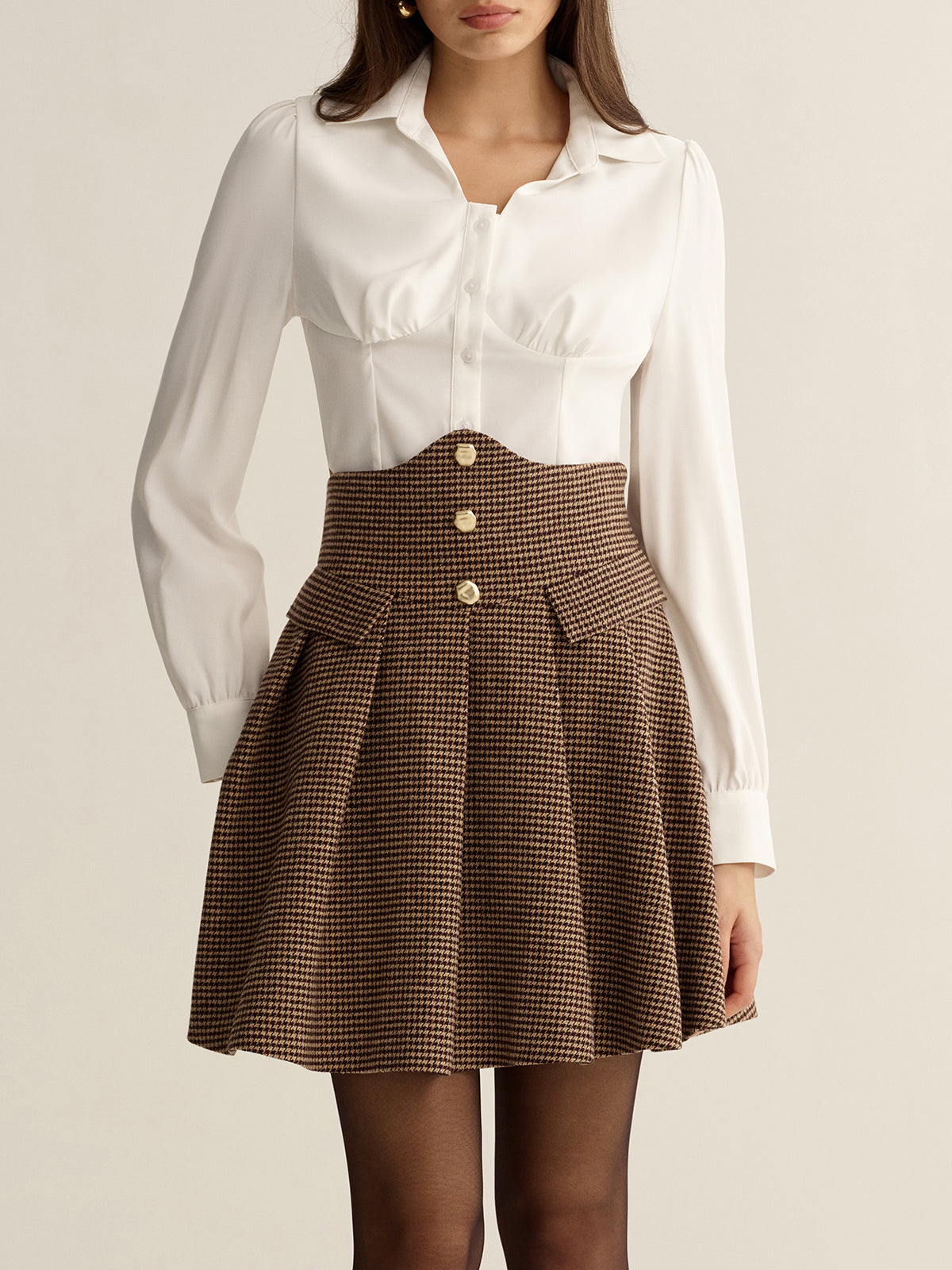a-none,bottoms,brown,casual,clothing,coll:bottoms,coll:matching_sets,coll:old_money,coll:skirts,coll:vintage_fabrics,corpcore,fall,high waist,in_six_month,inner sample,invisible zipper,matching sets,minegence,no,non-stretch,not_low_sales,oa251011010,photo_model,regular,regular fit,short,skirts,tweed,winter,women