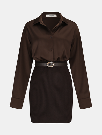 Belted Cold-Shoulder Turtleneck Knit Dress