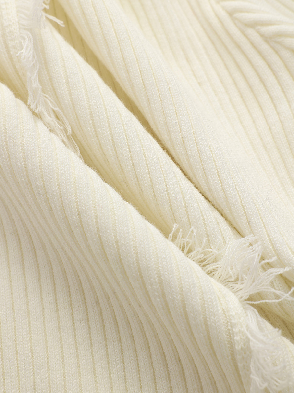 Fringe Ribbed Wool Blend Knit Top