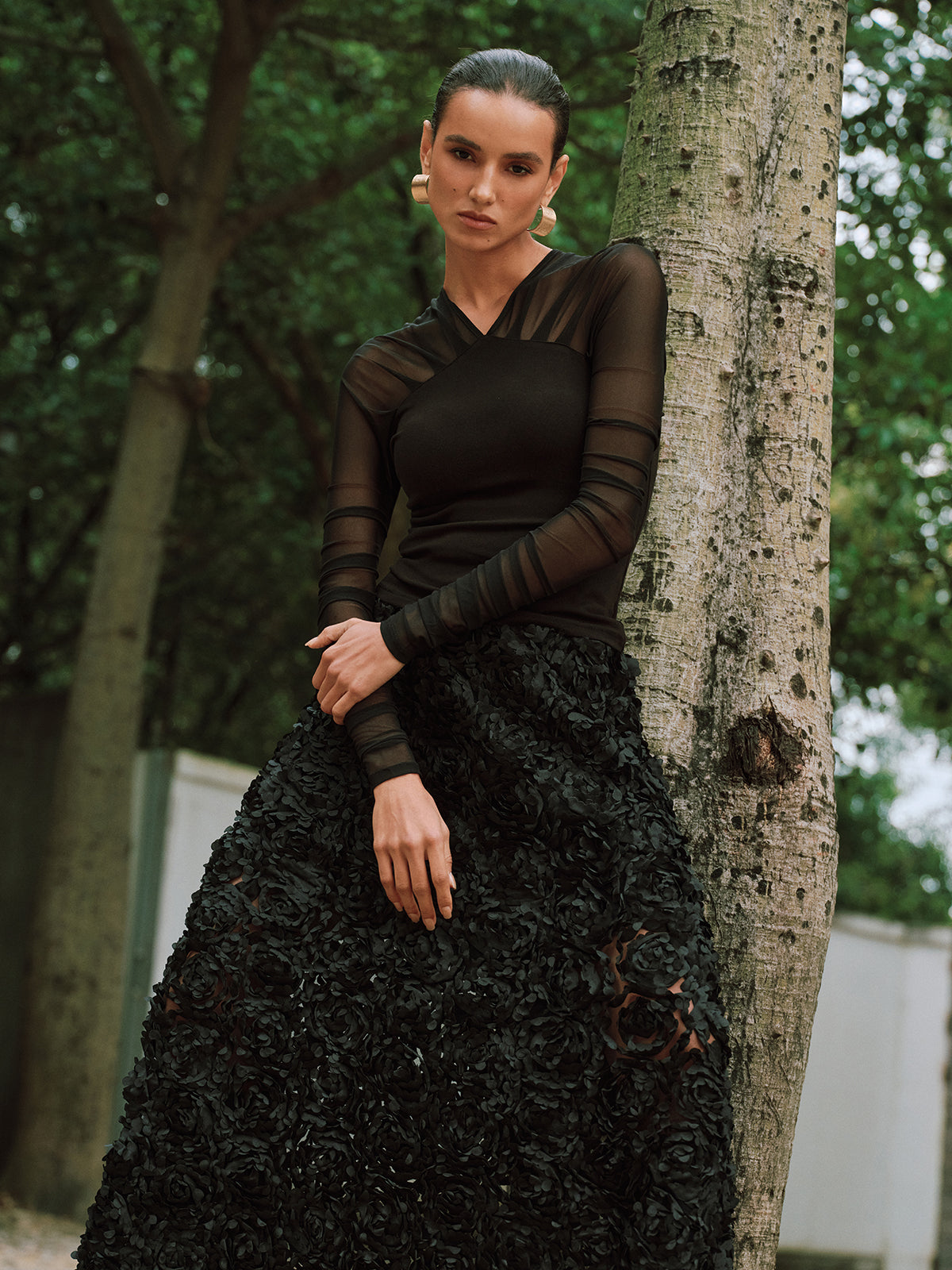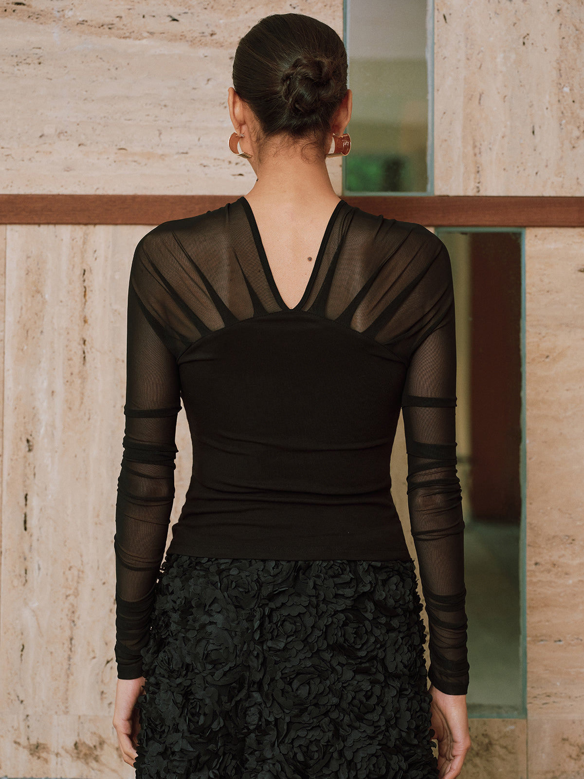black,blouses,casual,clothing,coll:blouses_shirts,coll:sheer_bare-back,coll:tops,corpcore,fall,in_six_month,inner sample,jersey,long sleeve,medium stretch,minegence,not_low_sales,oa250905045,patchwork,photo_model,regular,semi-sheer,sheer,slim fit,spring,thin,tops,v-neck,winter,women